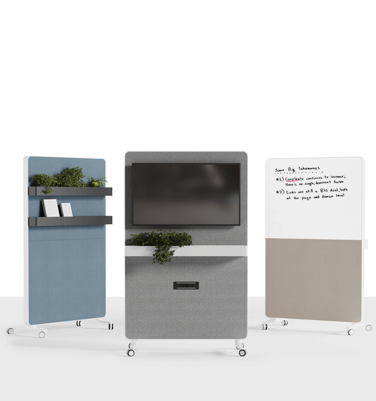 A mobile and lightweight support that allows you to create different environments, being able to integrate whiteboards and interactive screens as well as complementary accessories.