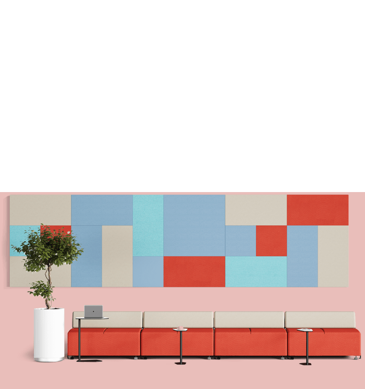 Acoustic and decorative panels that improve working conditions, especially in open spaces, thanks to their fabric and internal foam with high acoustic absorption properties.