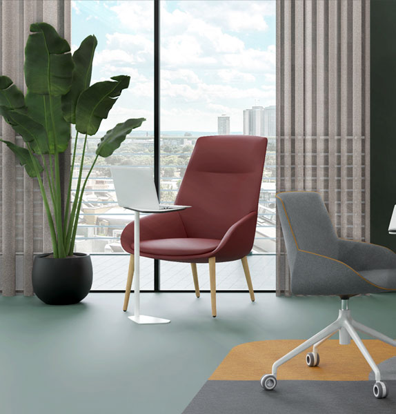 Support element that is subtly integrated into all types of environments, used to complement soft seating solutions of different heights. It offers different positions of use such as for writing or interactive work, according to the different tasks or requirements of the moment.