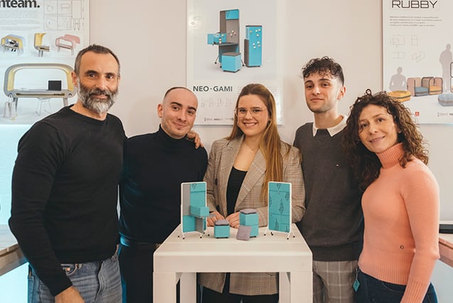 Of those 22 projects, five were shortlisted as finalists: INTEAM (EASD València), RUBBY (EASD Alicante), ARCO (EASD Alicante), NEO-GAMI (EASD Alcoi) and OMNI (EASD Alicante). The other pieces were exhibited at the award ceremony, organised in the Centro del Carmen de Cultura Contemporánea (CCCC) in Valencia, where the five teams were given the opportunity to present their proposals and, after deliberation by the jury, the winner was announced.