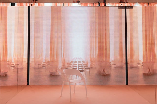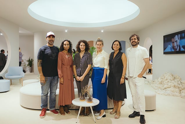 Two spaces have conveyed this philosophy of a hybrid world: on the one hand the stand designed by Isern Serra and on the other the infinity room co-designed by Isern Serra and Alba de la Fuente. Both spaces were built by Cosin Estudio. The stand, composed of comfortable and functional areas linked to the field of hospitality, and the Infinity Room that has immersed visitors in a digital art experience with the name "Heliophilia".