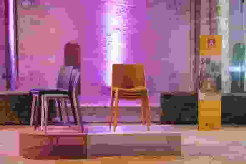 Actiu's furniture has also served as a backdrop for other events parallel to Hábitat. Thus, in the Ágora in the Plaza del Ayuntamiento, on Monday the Fluit chairs welcomed those attending the presentation of the first podcast of "La Gran D", the first podcast on design by Podium Podcast that brings together great creators such as Paola Antonelli and Javier Mariscal. This project, promoted by the PRISA group, is presented by the journalist Anatxu Zabalbeascoa.