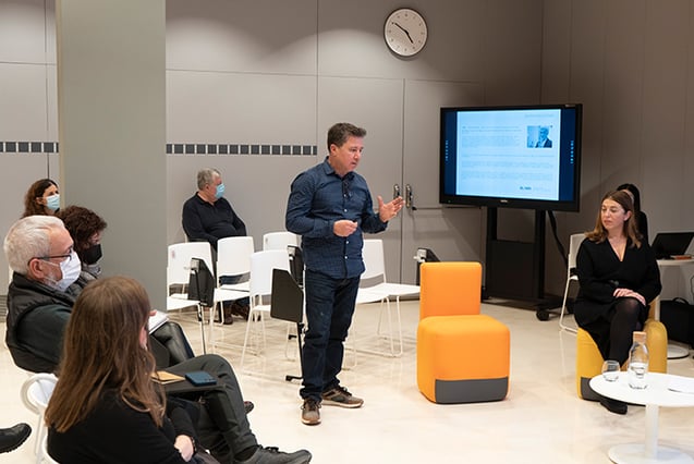 The first day of the CDICV Academy (Association of Interior Designers of the Valencian Community) focused specifically on the characteristics and new features of "Healthy Offices" in a talk that brought together experts in fields such as furniture, interior design, air filtration systems and the latest technology in toilets. Actiu's brand reputation director and advisor, Soledat Berbegal, Isabel Chover from Canyamás Estudio, the sales director at Airzone in the Valencia Region, Pedro Morales, Xavier Lledó from Xavier Lledó Arquitectura e Interiorismo and Carlos Bañuls, technical architect from Ideal Standard.