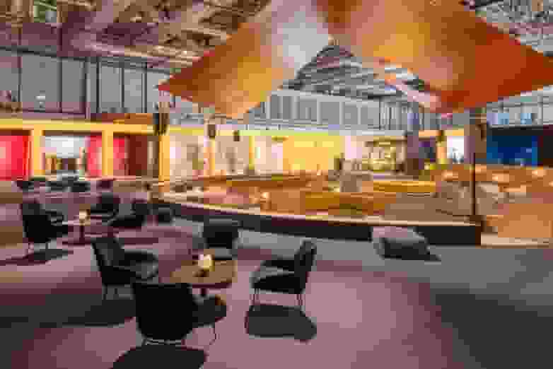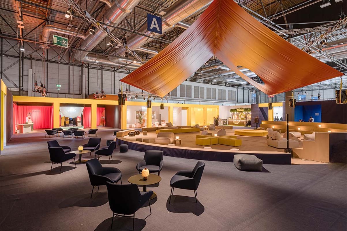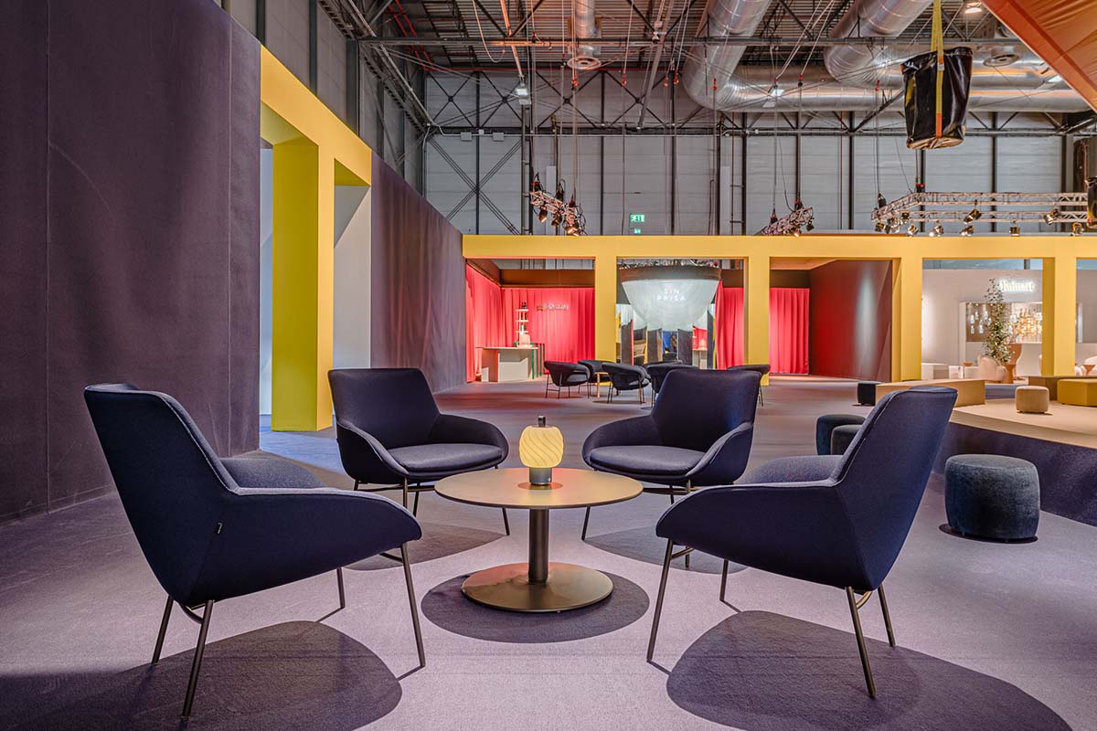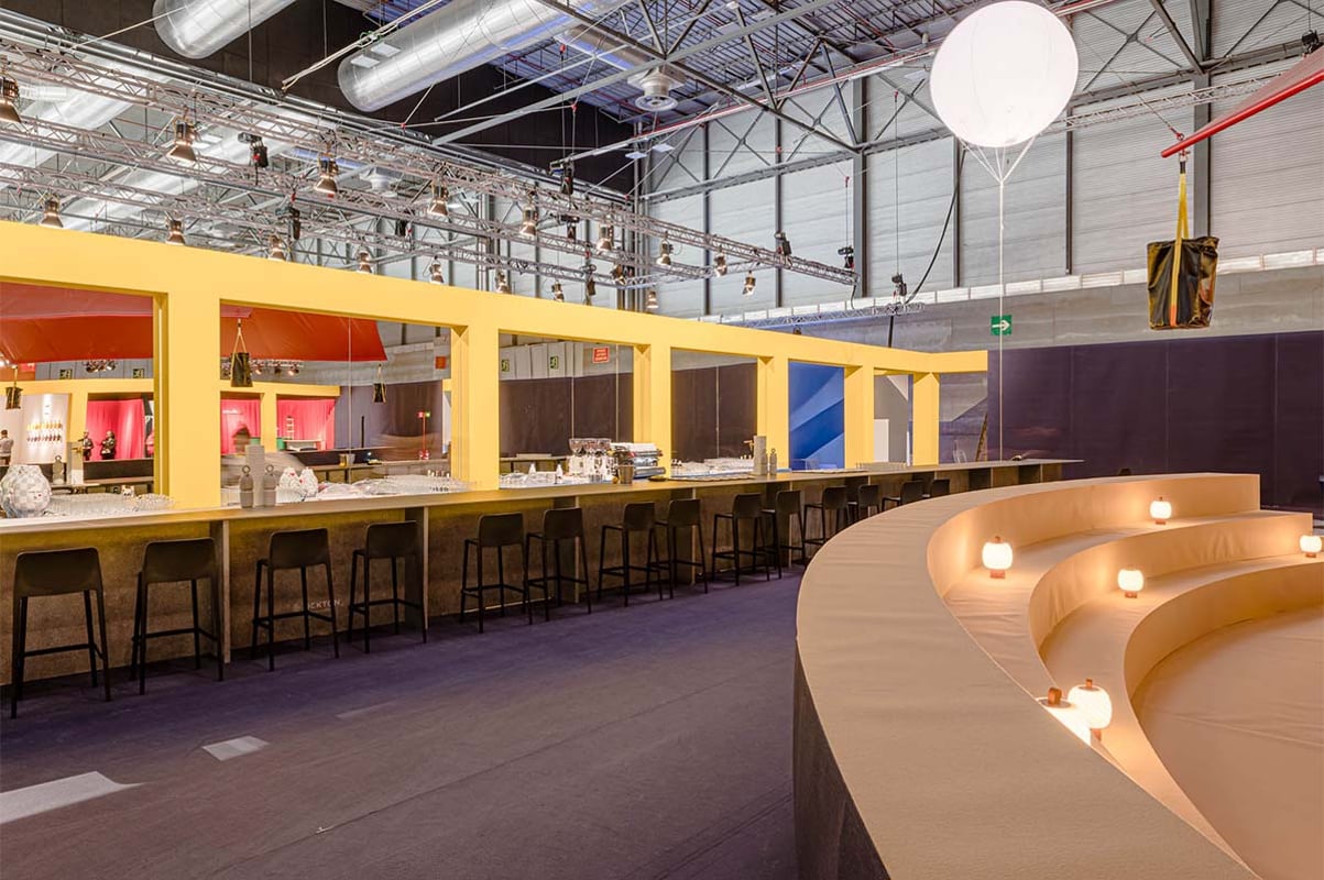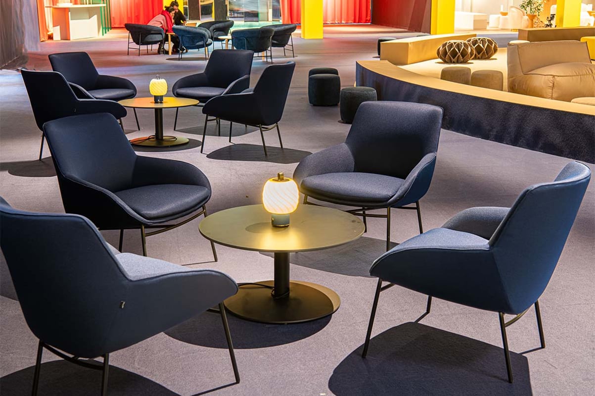 The interior design of the Guest Lounge (formerly the VIP Room) has created an atmosphere inspired by popular festivals as a representation of the collaboration, interaction, celebration and joy that characterises Mediterranean cultures. A culture that is in line with the values of Actiu, which has dressed the space with pieces from its Noom collections, designed by Alegre Design, Fluit high stools by Archirivolto Design and Tabula low tables, with which it creates hybrid spaces for connection and exchange of ideas.