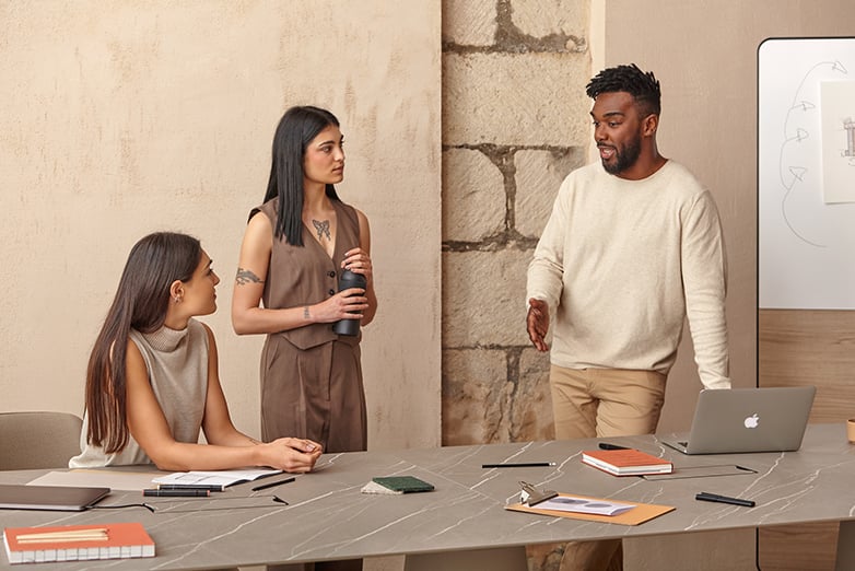 Similarly, the colours in a space influence how we feel: calm tones in areas of concentration bring serenity, while more vibrant palettes in areas of creativity can activate energy and encourage teamwork. Visual order also plays a key role. Uncluttered spaces with a clean, coherent design reduce mental fatigue and help keep the focus on what's important.