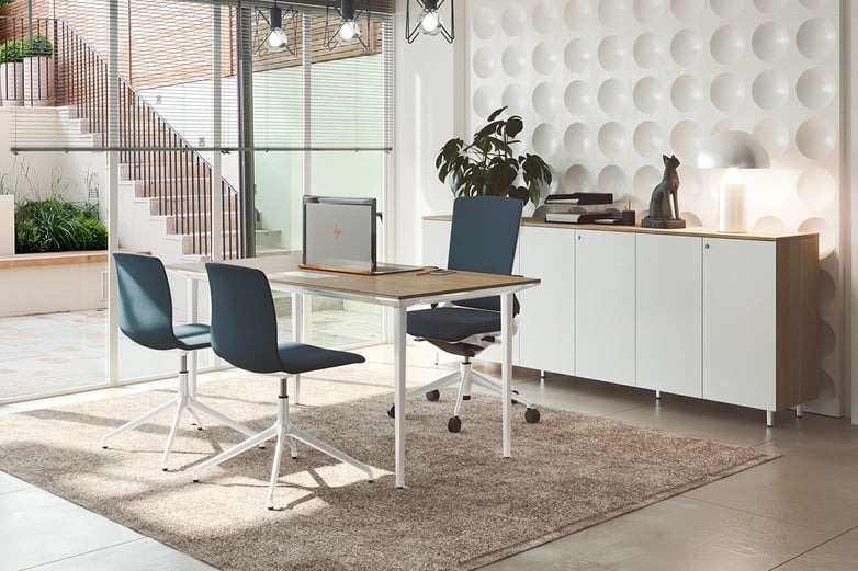 The key to a workspace with a Mediterranean-style interior design is to opt for light and natural materials. To evoke the warmth of the sun, furniture in colours such as white or cream can be used. The Prisma or the Talent desk are adapted to this trend, in the same way that the Stay office chair would be another perfect option, thanks to its range of colours and shades that typify this style: brown, orange or blue.