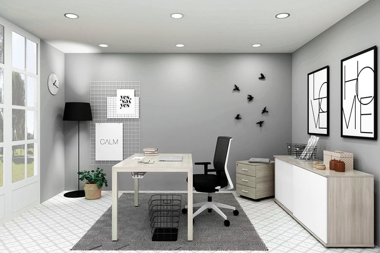 If a more contemporary design is preferred, the Nordic style, with cold coloured open spaces such as white or grey, the Stay and Efit office chairs with the Prisma desk will be the perfect choice. These three products offer a high level of comfort. The Prisma auxiliary cabinet is the complement that enables the space to respond to all the user's needs.