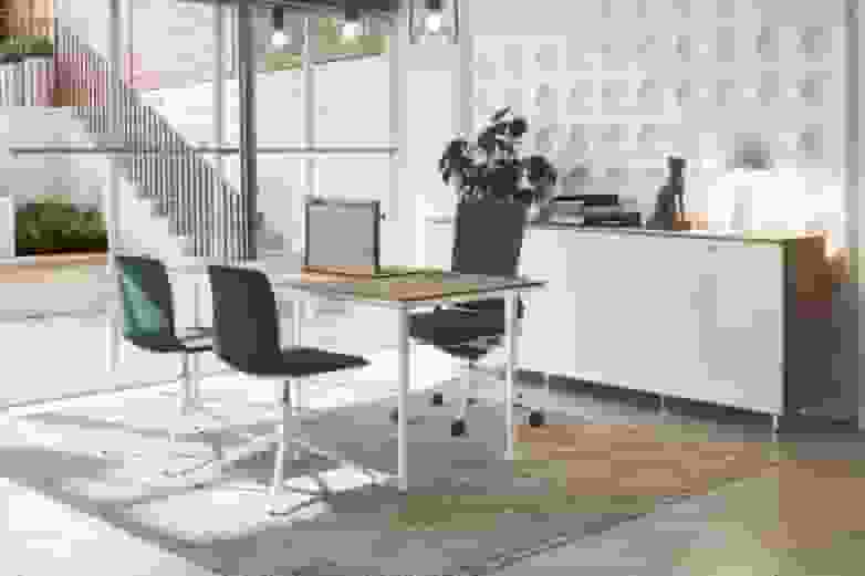 If a more contemporary design is preferred, the Nordic style, with cold coloured open spaces such as white or grey, the Stay and Efit office chairs with the Prisma desk will be the perfect choice. These three products offer a high level of comfort. The Prisma auxiliary cabinet is the complement that enables the space to respond to all the user's needs.