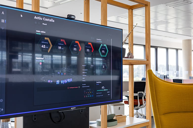 To allow these improvements to be applied, Gaia by Actiu® was created; a smart platform that allows parameters to be measured in real time related to temperature, humidity, sound, light, human presence and the quality of air and PM2.5 and PM10 particles in suspension. Objective information through usage data that is turned into valuable knowledge for making decisions when designing spaces.