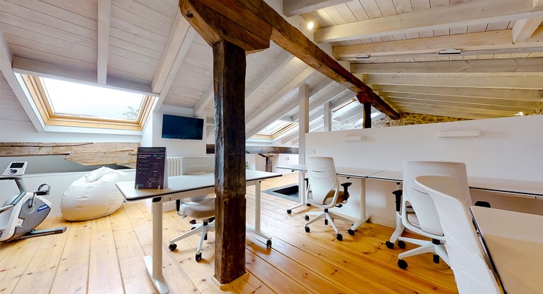 Located in Escalante (Cantabria), it has been designed for co-living and to optimise communal life, whether with friends, family or work colleagues. What's more, it is now also ideal for co-working, thanks to a new shared work area that has been fitted out with Actiu furniture, specifically operational solutions such as the Talent mobile and foldable tables and the Efit professional chair.