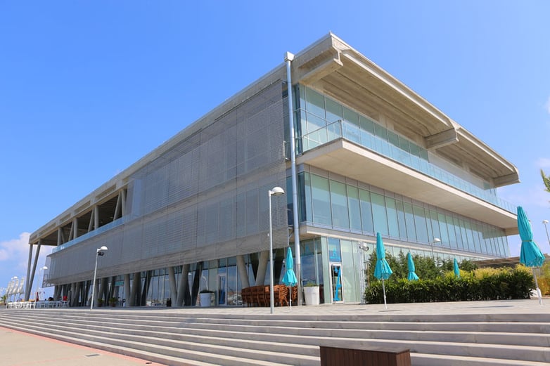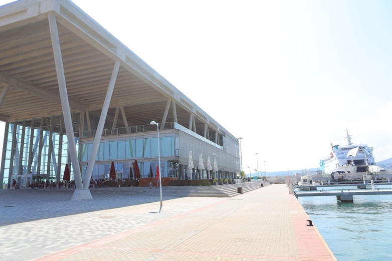 The new building, with a total surface area of 6.523 m2 plus another 2.841 m2 for the basement, offers all the necessary services to transport cargo and passengers, it has a ground floor where the ticket office is located, a leisure area and a restaurant open to everybody, the first floor where the offices are and 140 people working and the top floor which is dedicated to the departure lounge.