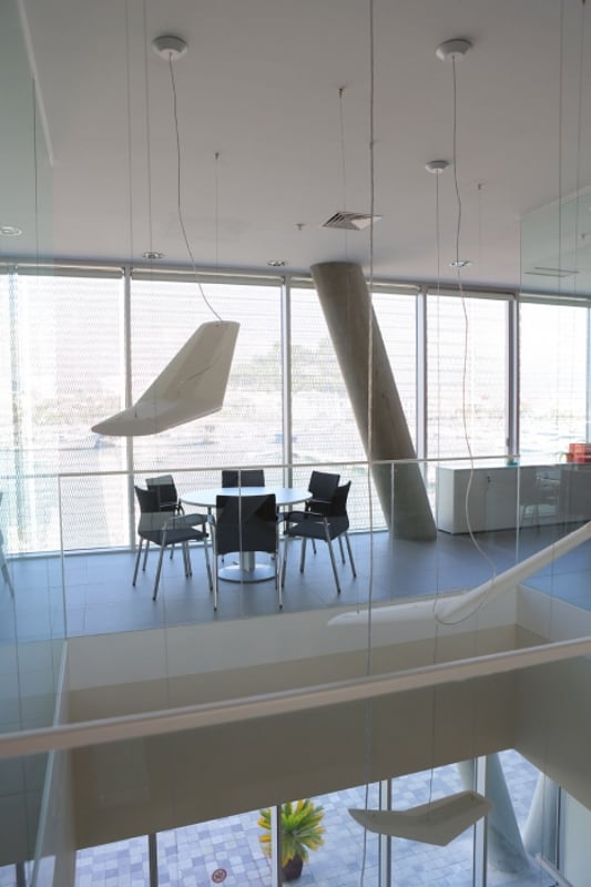 The new building, with a total surface area of 6.523 m2 plus another 2.841 m2 for the basement, offers all the necessary services to transport cargo and passengers, it has a ground floor where the ticket office is located, a leisure area and a restaurant open to everybody, the first floor where the offices are and 140 people working and the top floor which is dedicated to the departure lounge.