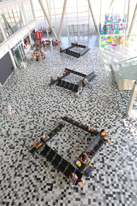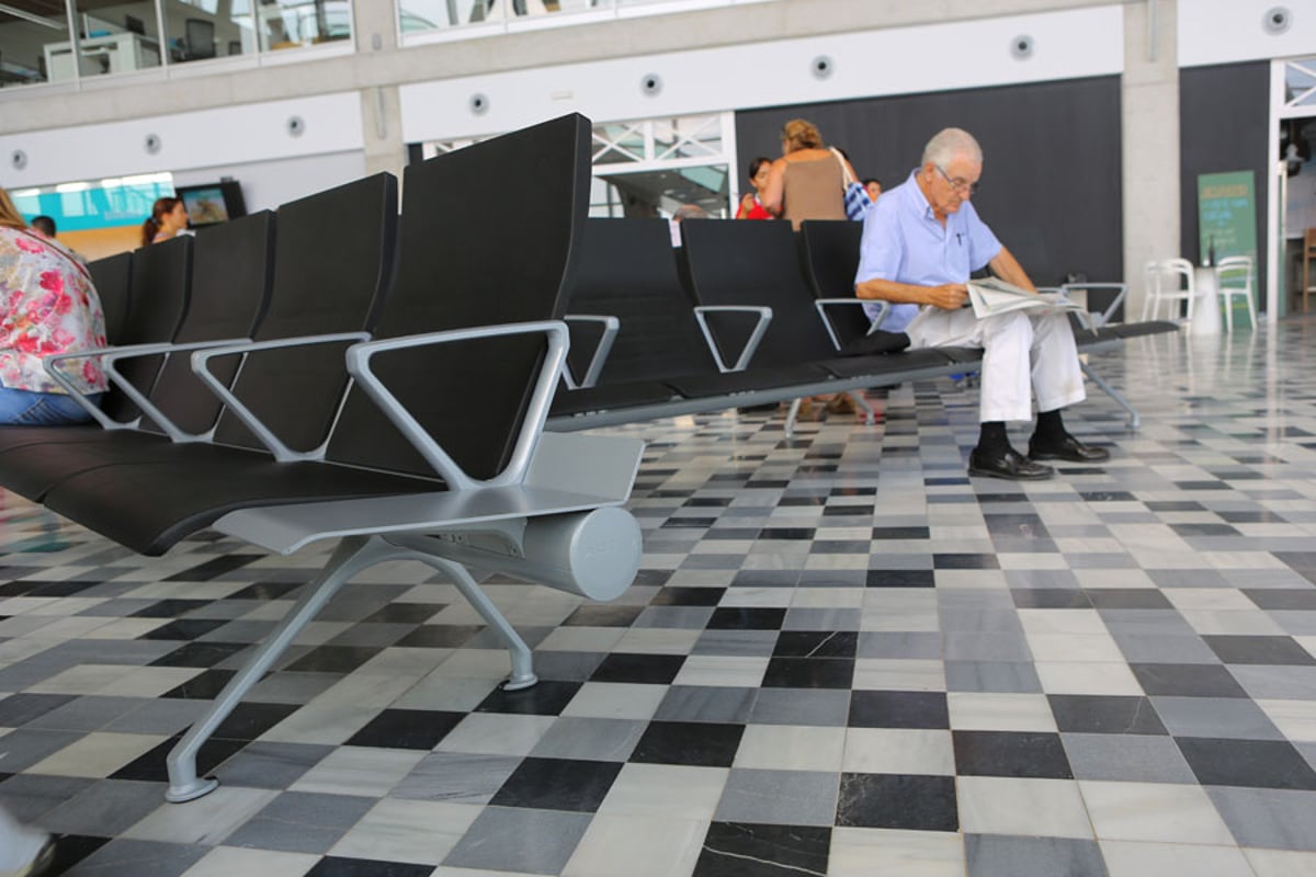 Three compositions in a square of Avant benches with its contemporary, fresh and functional image, ensure the waiting and rest moments for more than 600.000 passengers and the general public who pass annually through the main door of this maritime station.