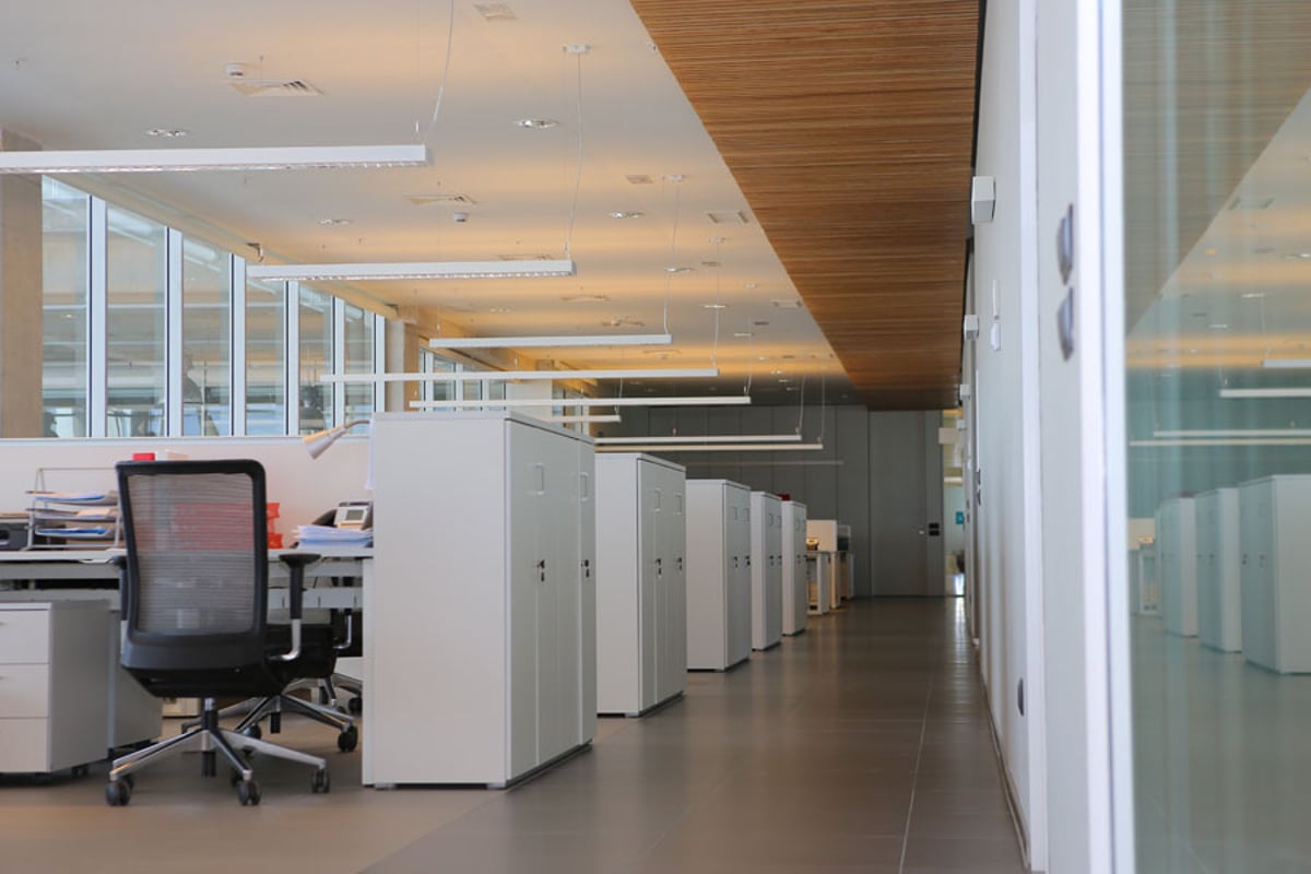 The use of filing elements in this project has two aspects; on one hand, it provides storage capacity for all administrative and documentary material that the company manages and secondly, the ability to create environments with more or less privacy.