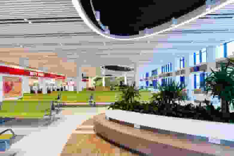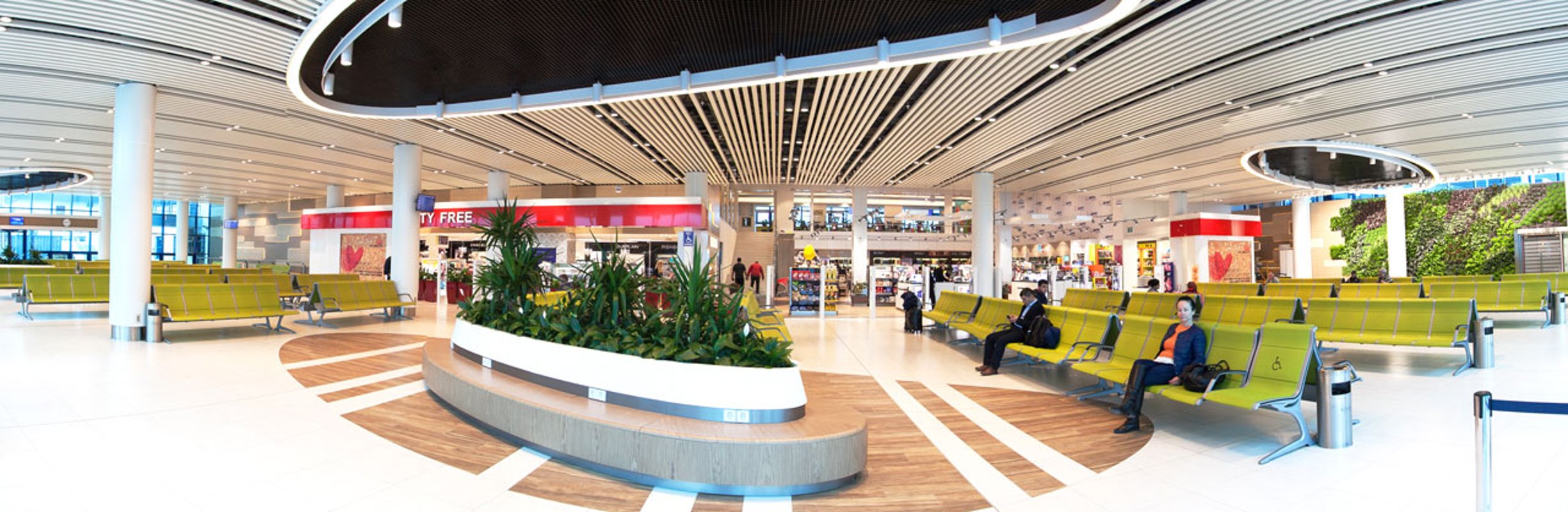 The architects responsible for the project were inspired by the natural beauty that the country has to offer when planning the interior design. In the new terminal one can breathe a pleasant atmosphere of freshness, innovation and nature, thanks to the combination of materials such as wood and stone and the creation of a microclimate which allows the conservation of independent interior gardens (insular and vertical).