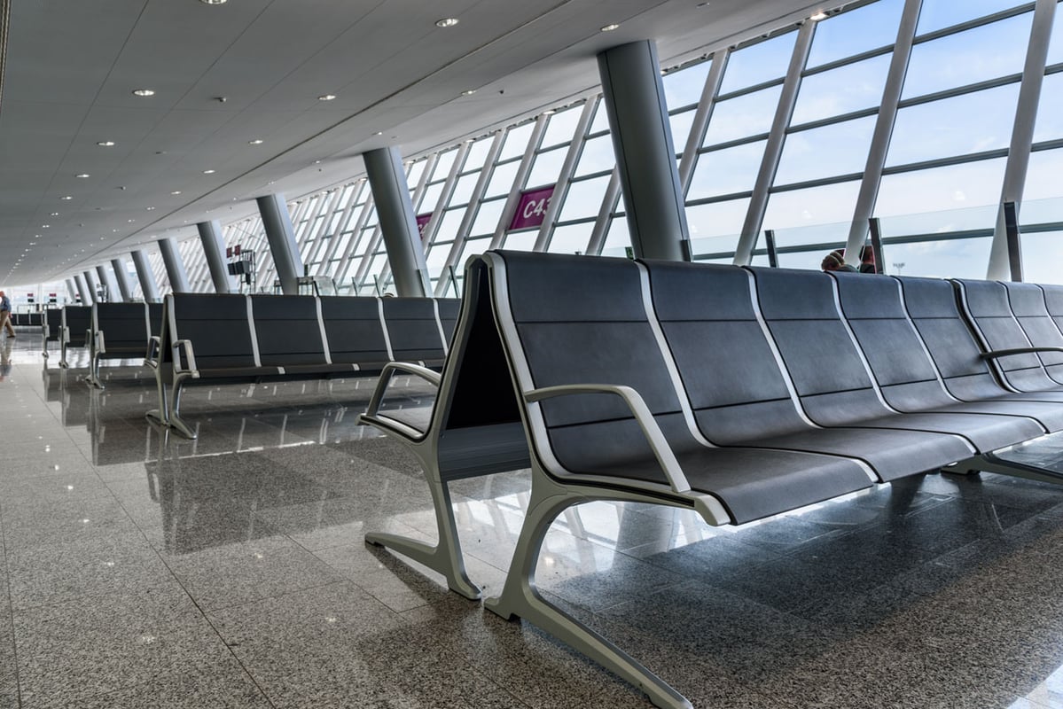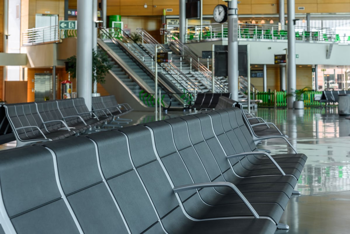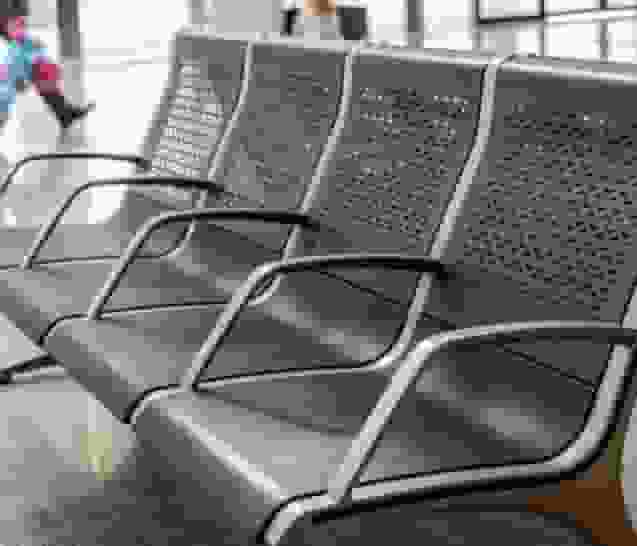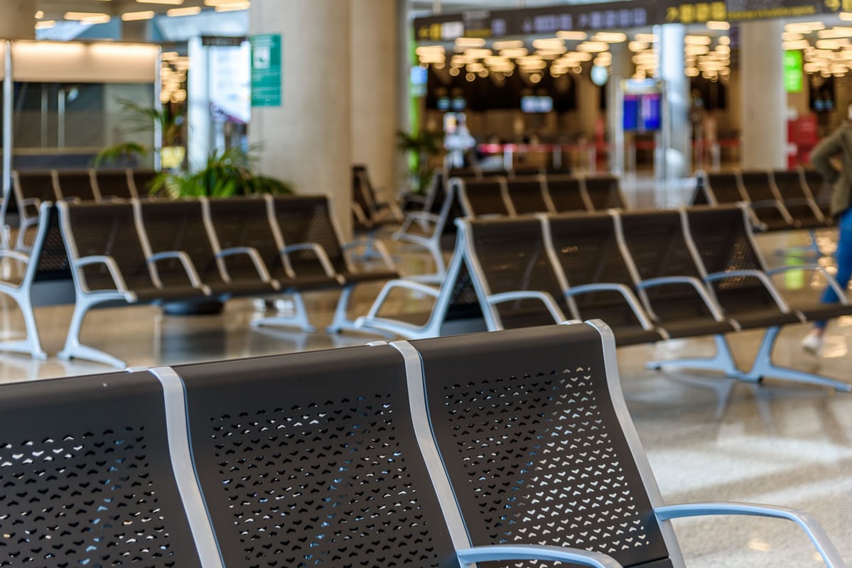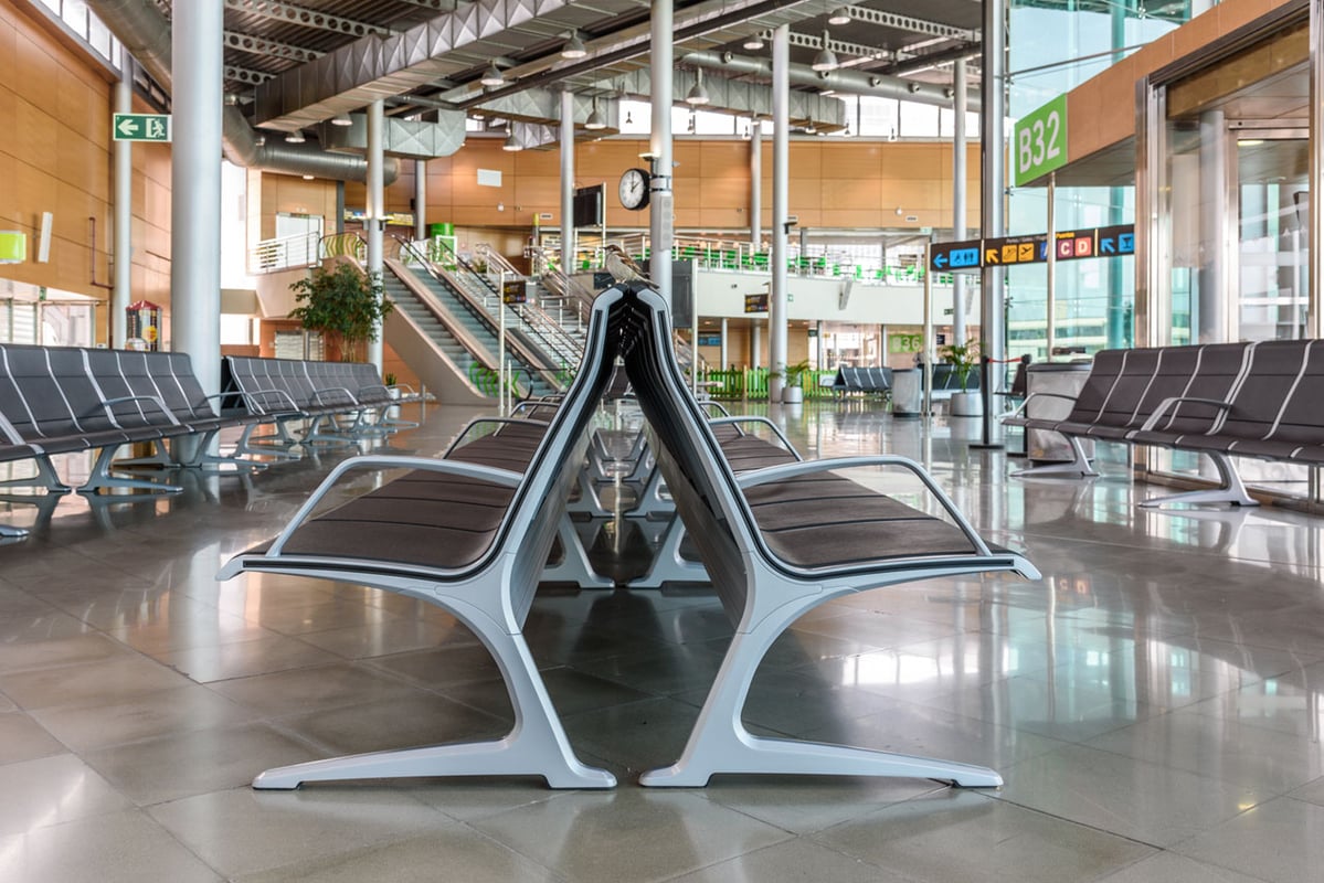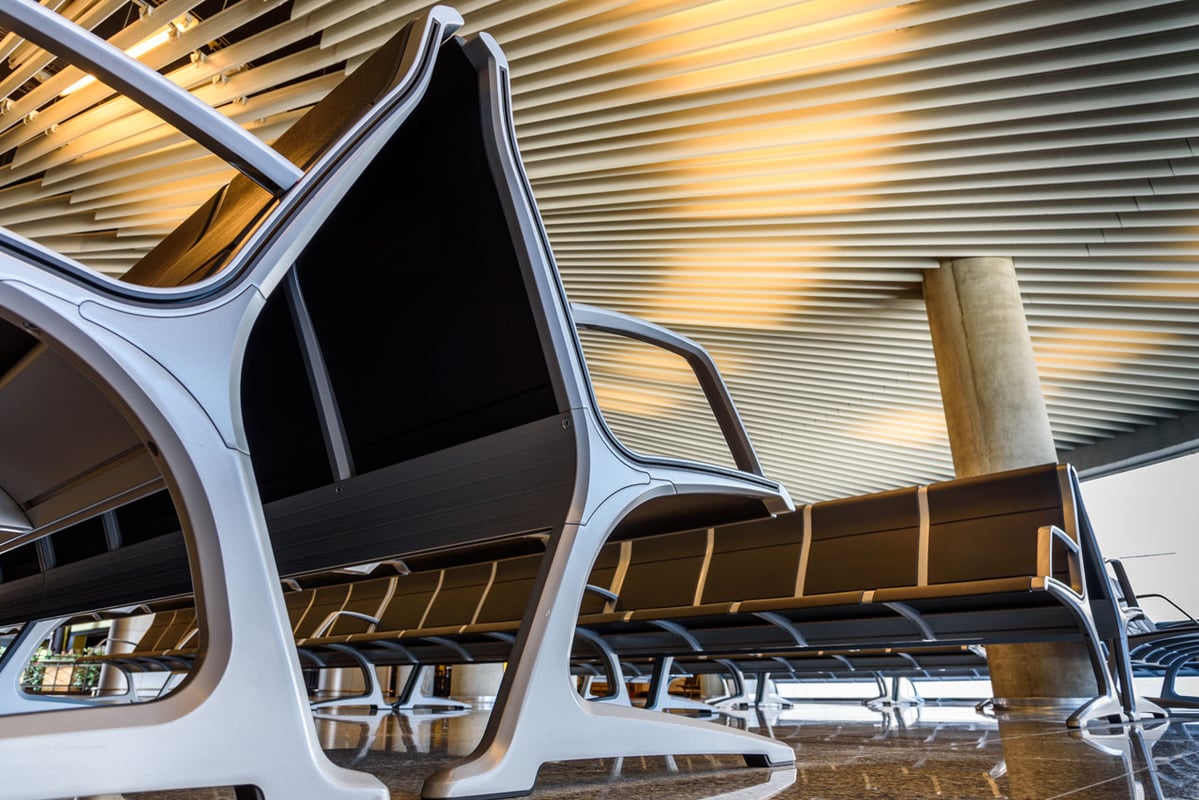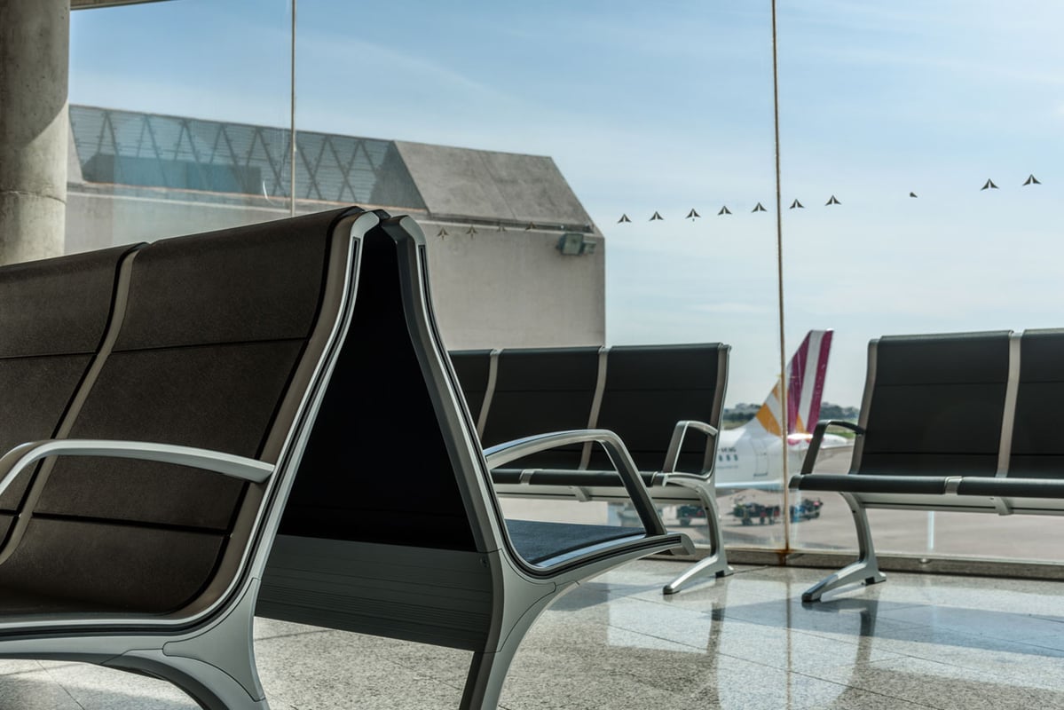 The Air Zone has been equipped with 1,300 benches with 4 seats and 900 with 5 seats made entirely of black polyurethane. They have armrests at the lateral ends but not in the middle, which allows passengers to lie down and rest comfortably if they have a long waiting time.