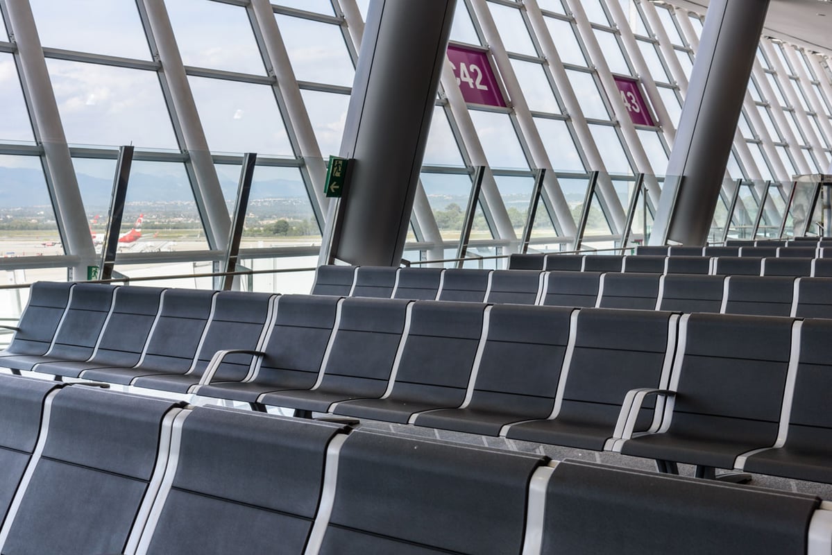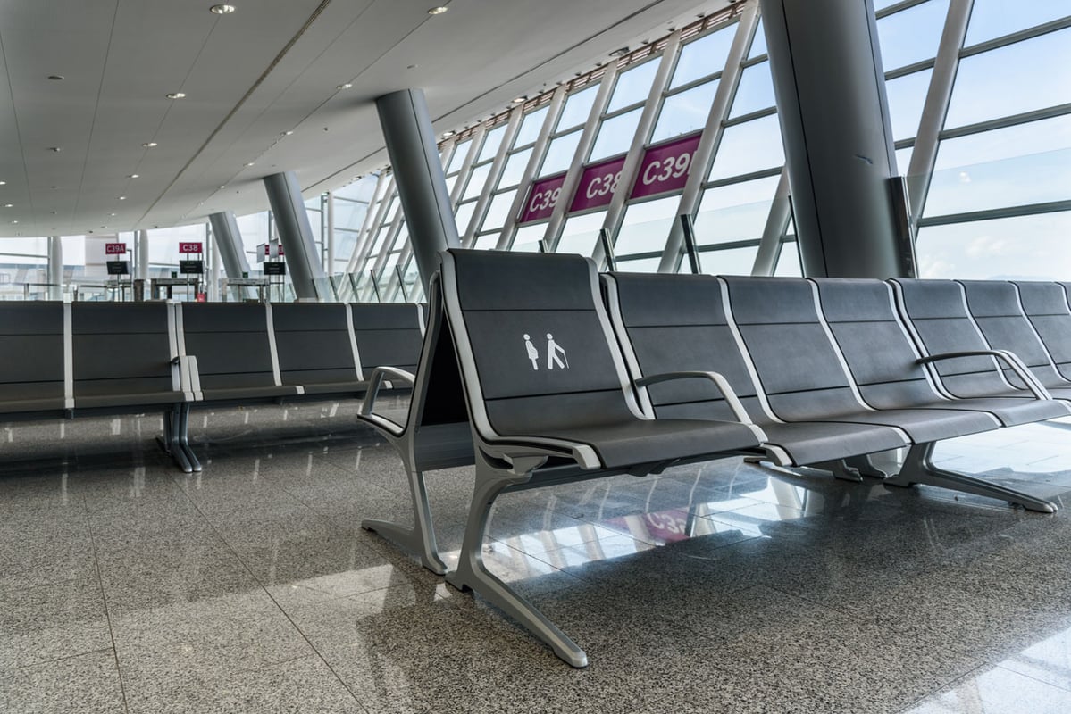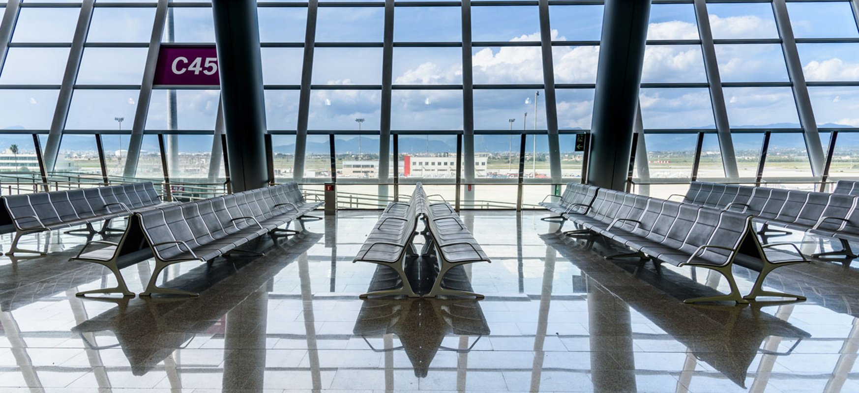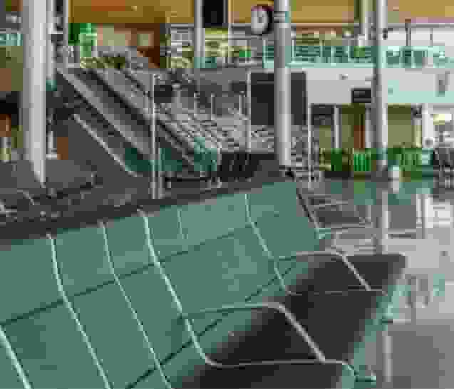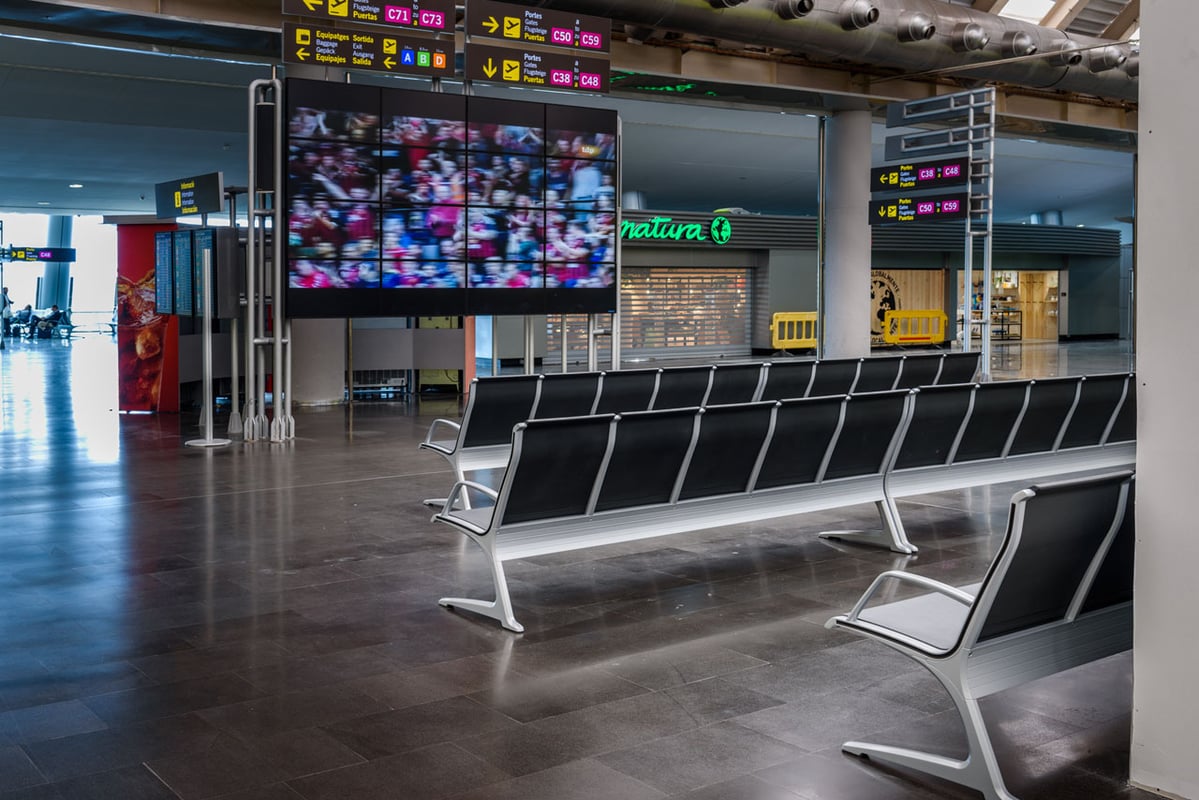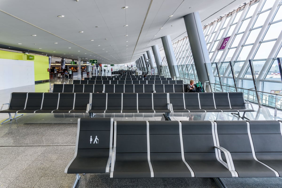 The Air Zone has been equipped with 1,300 benches with 4 seats and 900 with 5 seats made entirely of black polyurethane. They have armrests at the lateral ends but not in the middle, which allows passengers to lie down and rest comfortably if they have a long waiting time.