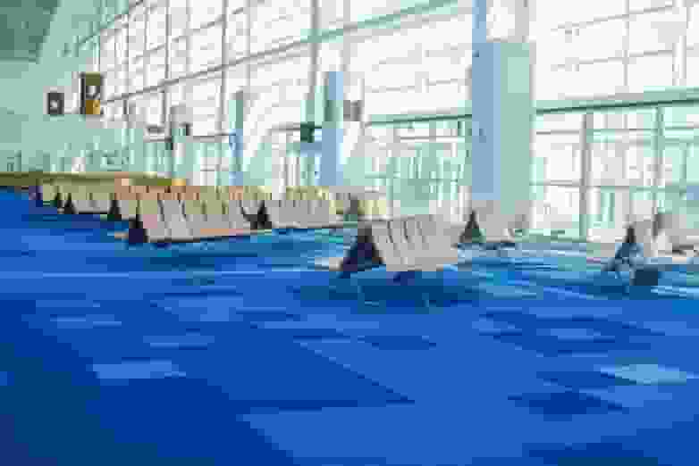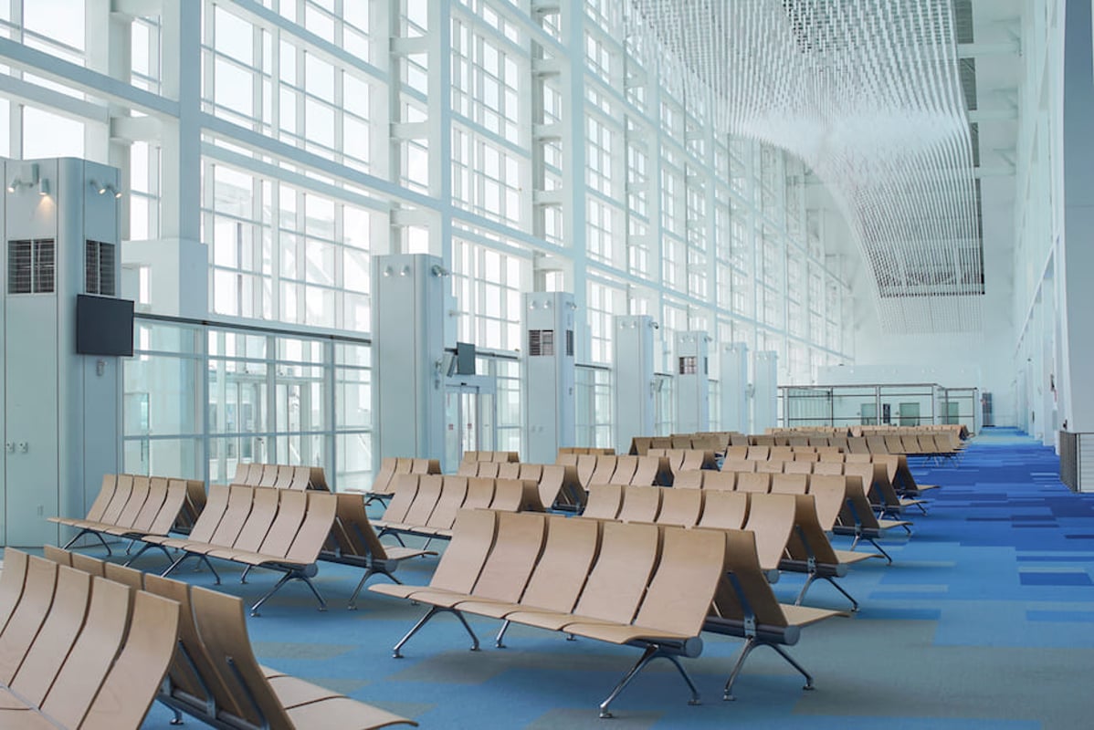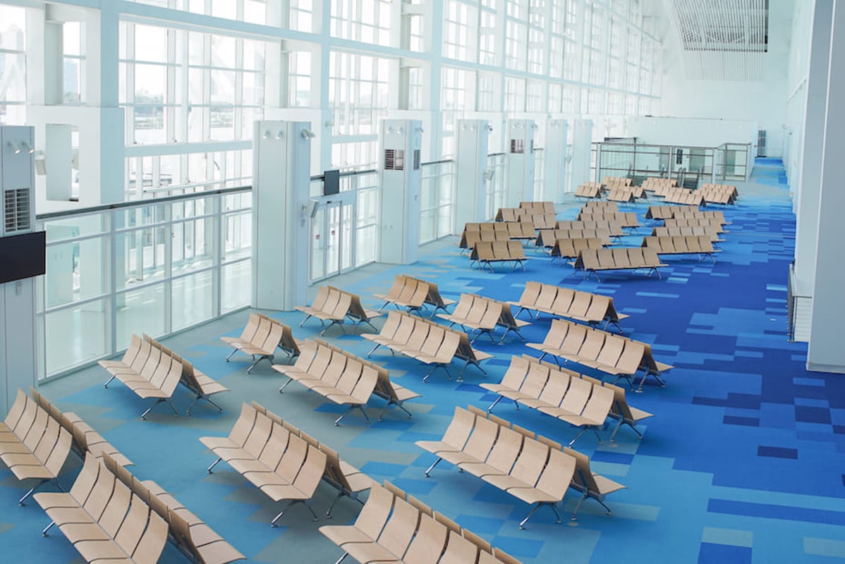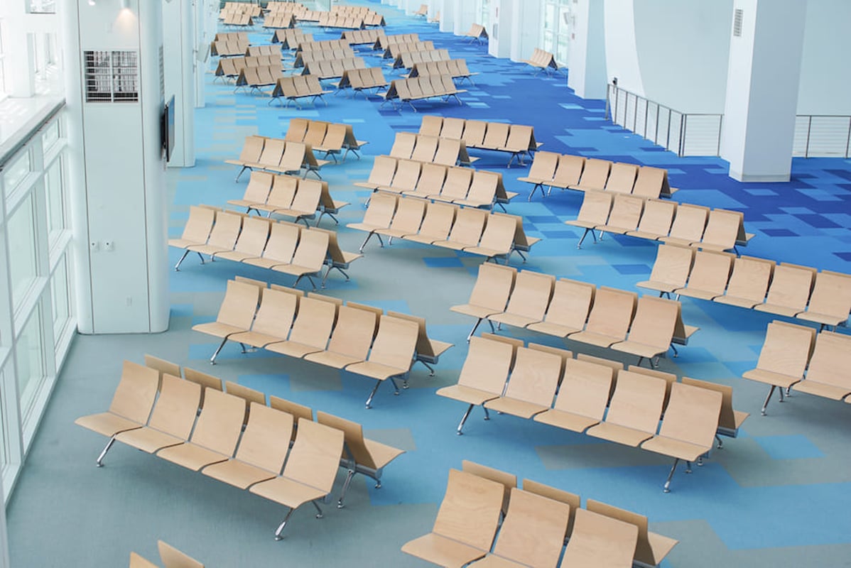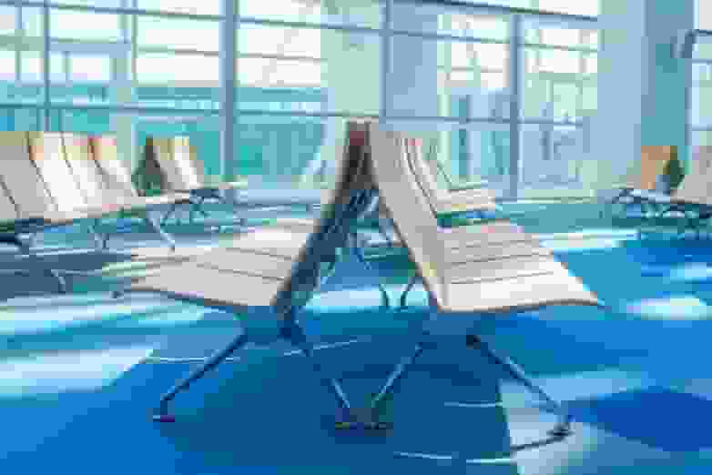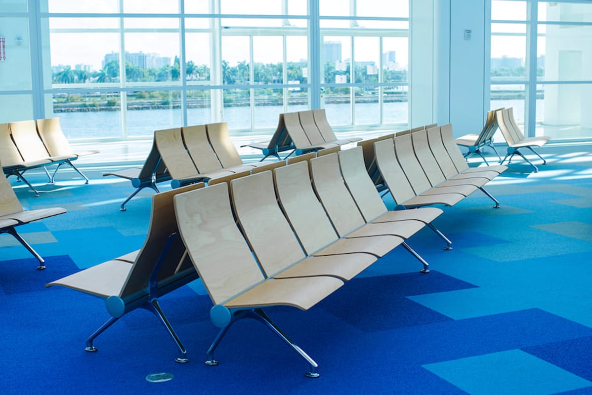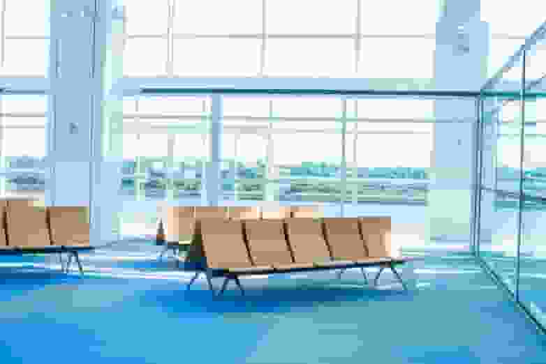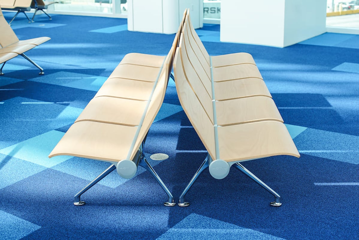 The interior is no less impressive, with a grand hall more than 11 storeys high that recreates the lobby of a ship. With steel columns and aluminium panels, its smooth finish is reminiscent of the surface of a pearl, while the carpeting in shades of blue recreates a cosy oceanic atmosphere. On it, and like small living organisms, the Avant benches by Actiu are distributed, with soft and ergonomic lines that ensure comfort while waiting. To enhance the connection with nature and thus improve the passenger experience, wood has been chosen for the seat and backrest, and no armrests or side tables have been added.