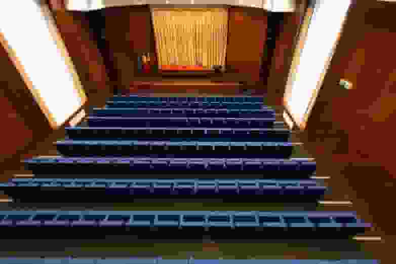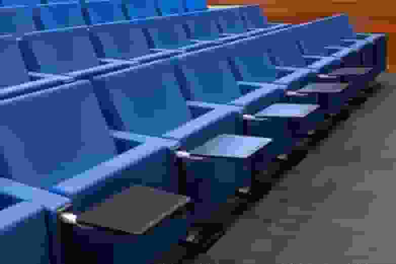 Furthermore, each seat incorporates a built in writing tablet which is hidden in the side of the armrest which it is folded.