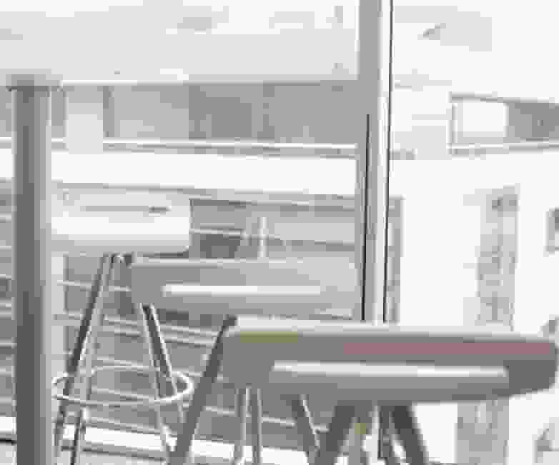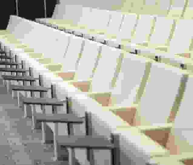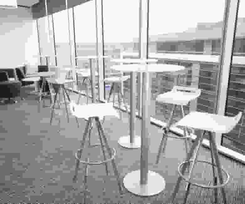 In the halls and lobby of the centre, informal spaces have been set up with Circular base coffee tables, higher ones from Canteen tables and stools from the MIT program.