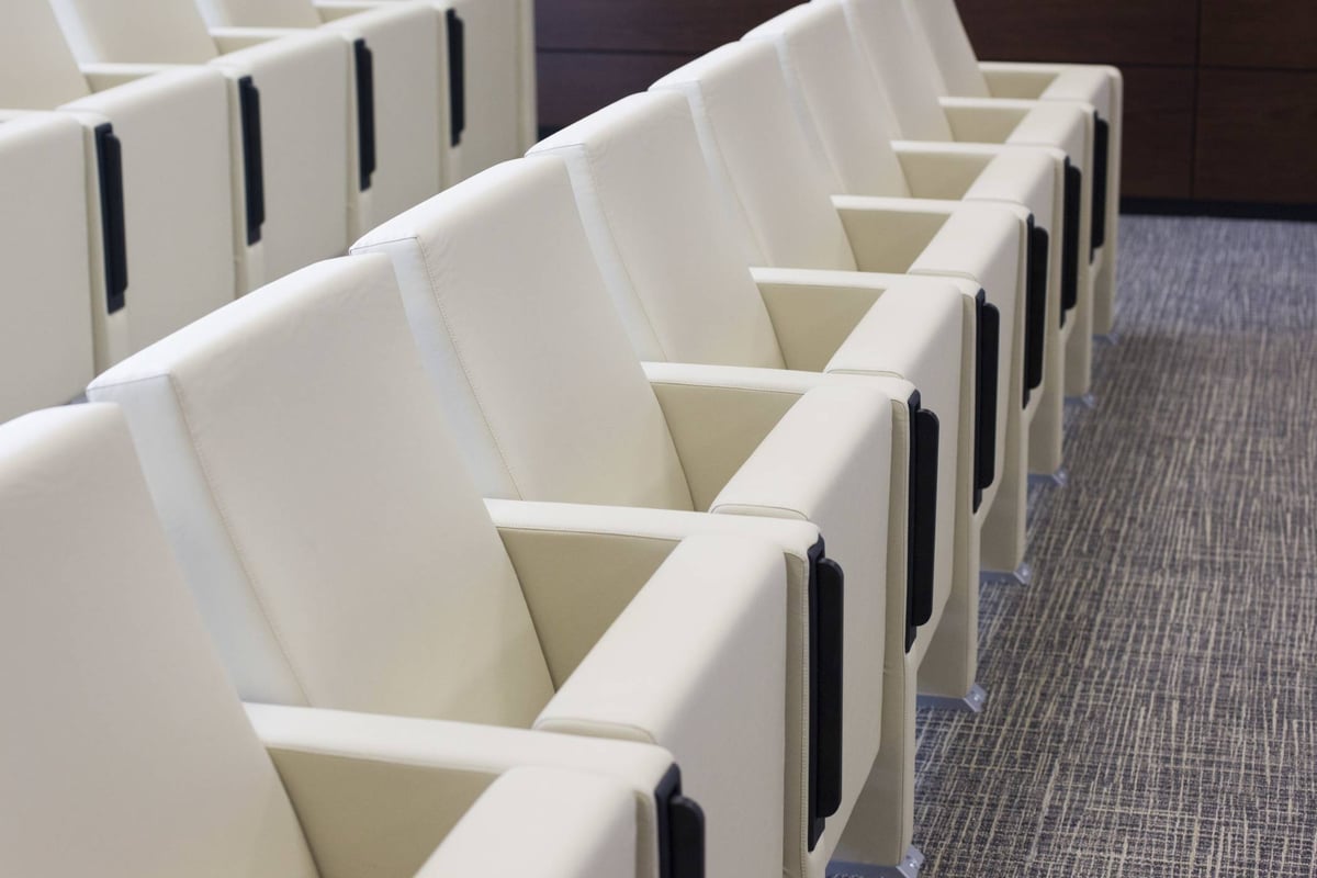 The Audit 10 model was chosen, upholstered completely in cream, so that it stands out in a room clad with dark wood paneling. It is made from a upholstered back, achieving an ergonomic product, with stable recovery and great comfort.