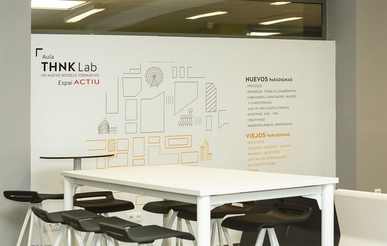 Actiu, in collaboration with Cotes Baixes High School, Alcoy, a reference for educational quality and innovation in the Valencia region, has used part of its facilities to implement a pilot programme based on testing, which is backed by the Education Council of the Valencian Government and is based on promoting educational change by creating new spaces.