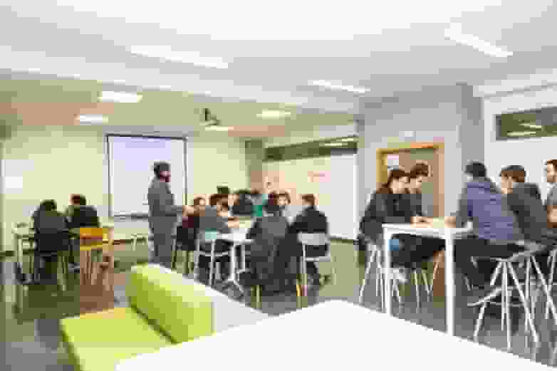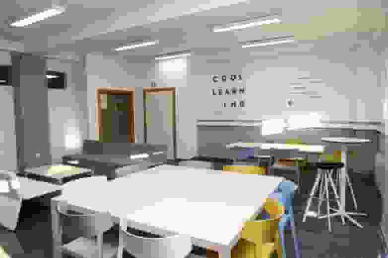 For the development of the project, the traditional classroom has been redesigned into an open space, divided according to the furniture and functional needs, into four different work areas which are used to develop specific methodologies in each of them; they combine the free and easy, more social aspect of new teaching (Cool) with deeper learning (Working).