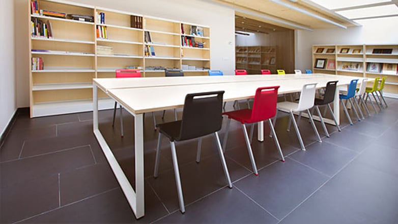 The library has also been furnished with the model table Vital Plus ST and with five of the seven colours that Mit offers (red, blue, white, black and pistachio) with which have been distributed in all the rooms in the International Cooking School. The Library Class 20 provides rigorous technology and flexibility to be able to continue expanding the configuration, if necessary.