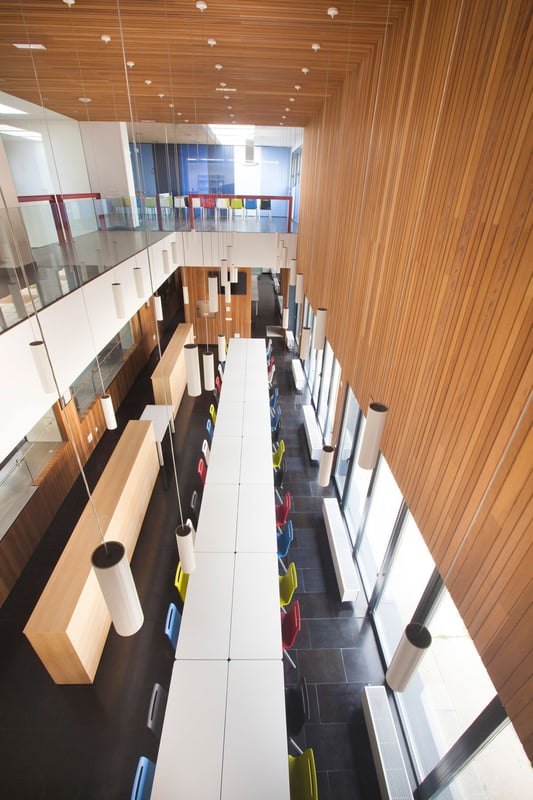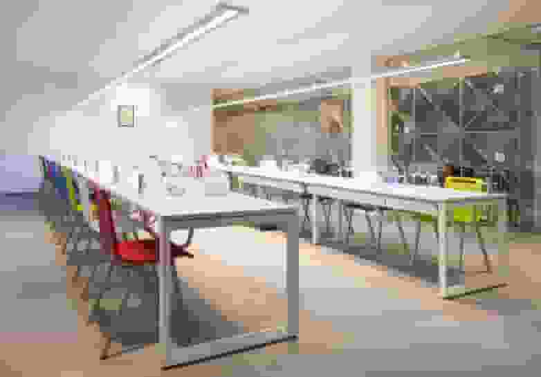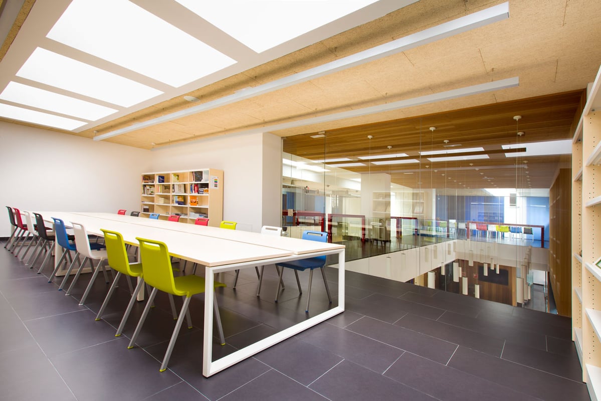 Its modern facilities enable comfortable and professional learning development. The distribution of space has been conceived so that there is a visual connection to all areas, achieving a high degree of efficiency. All work areas have been designed under the concept of open and light space, achieving areas that facilitate teamwork and communication.