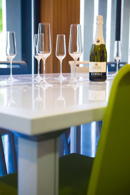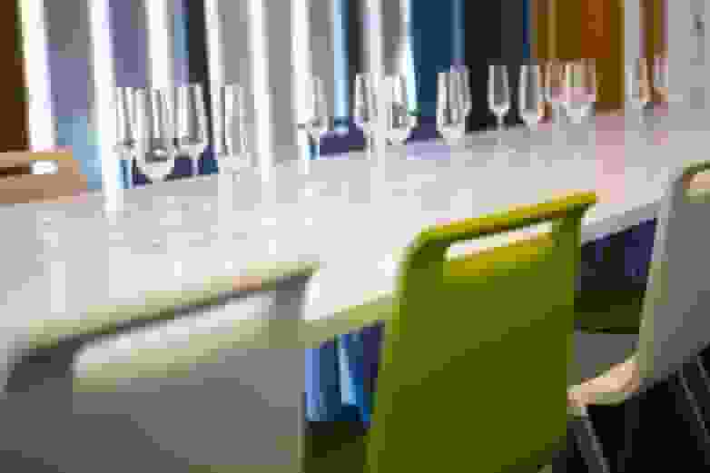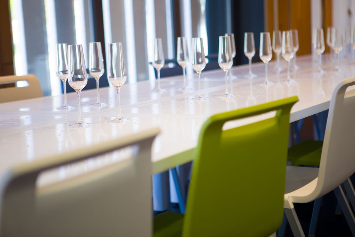 The school has two professional tasting rooms equipped to host official tastings and for which the table Vital Plus ST has been chosen, with a closed framed structure and white legs and with a wiring channel through the entire installation. The model chair Mit adds colour to the composition with its wide colour range.