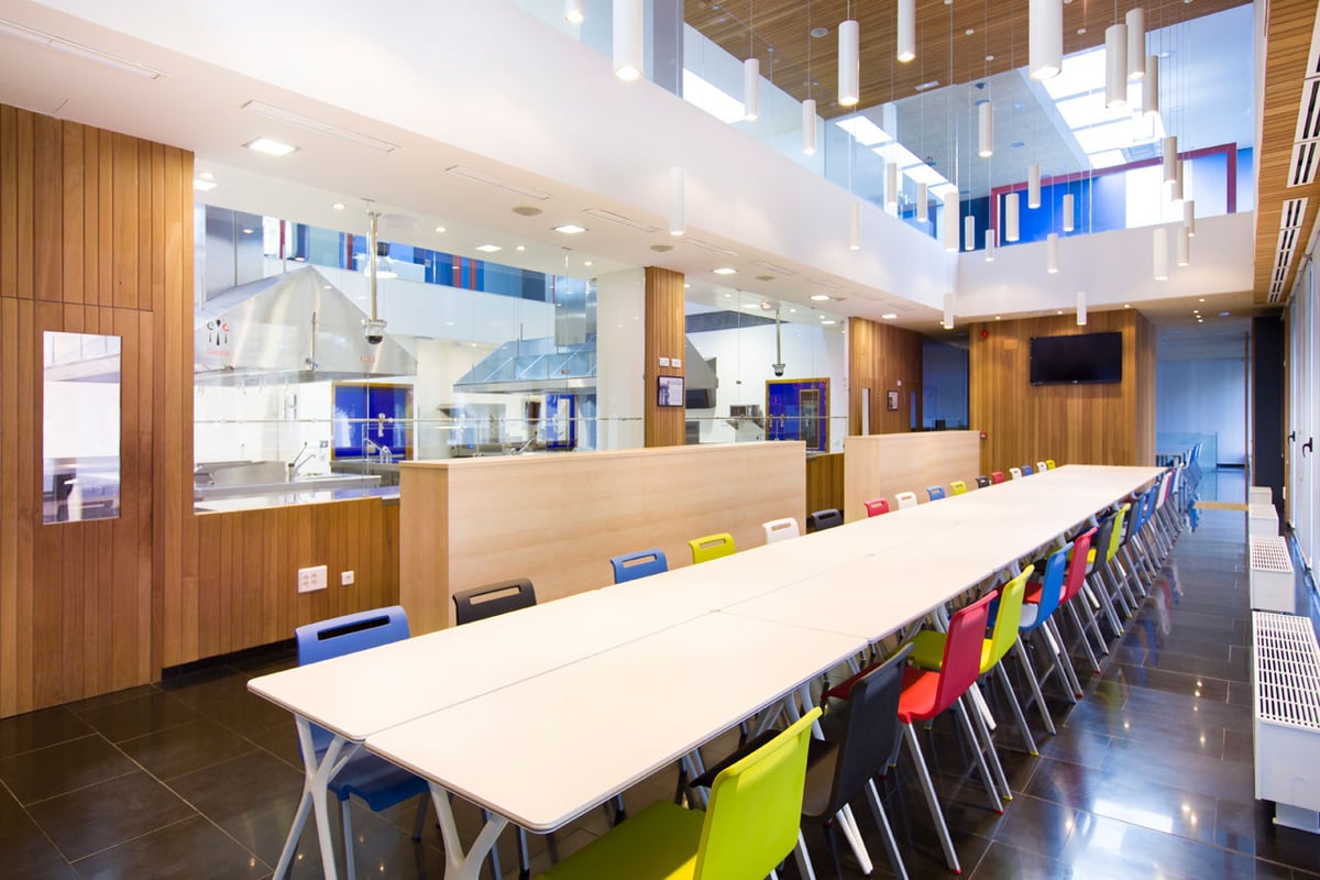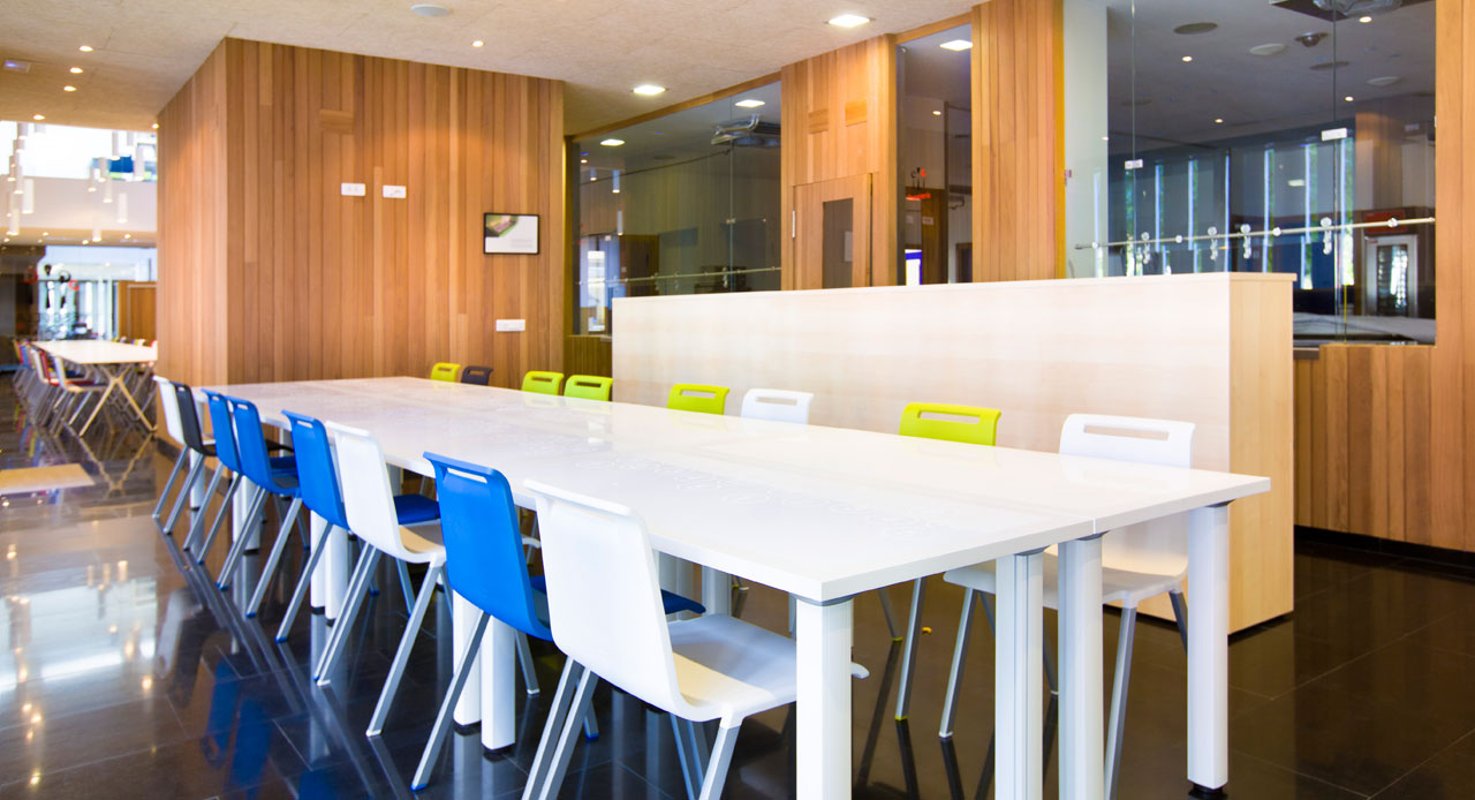 The library has also been furnished with the model table Vital Plus ST and with five of the seven colours that Mit offers (red, blue, white, black and pistachio) with which have been distributed in all the rooms in the International Cooking School. The Library Class 20 provides rigorous technology and flexibility to be able to continue expanding the configuration, if necessary.
