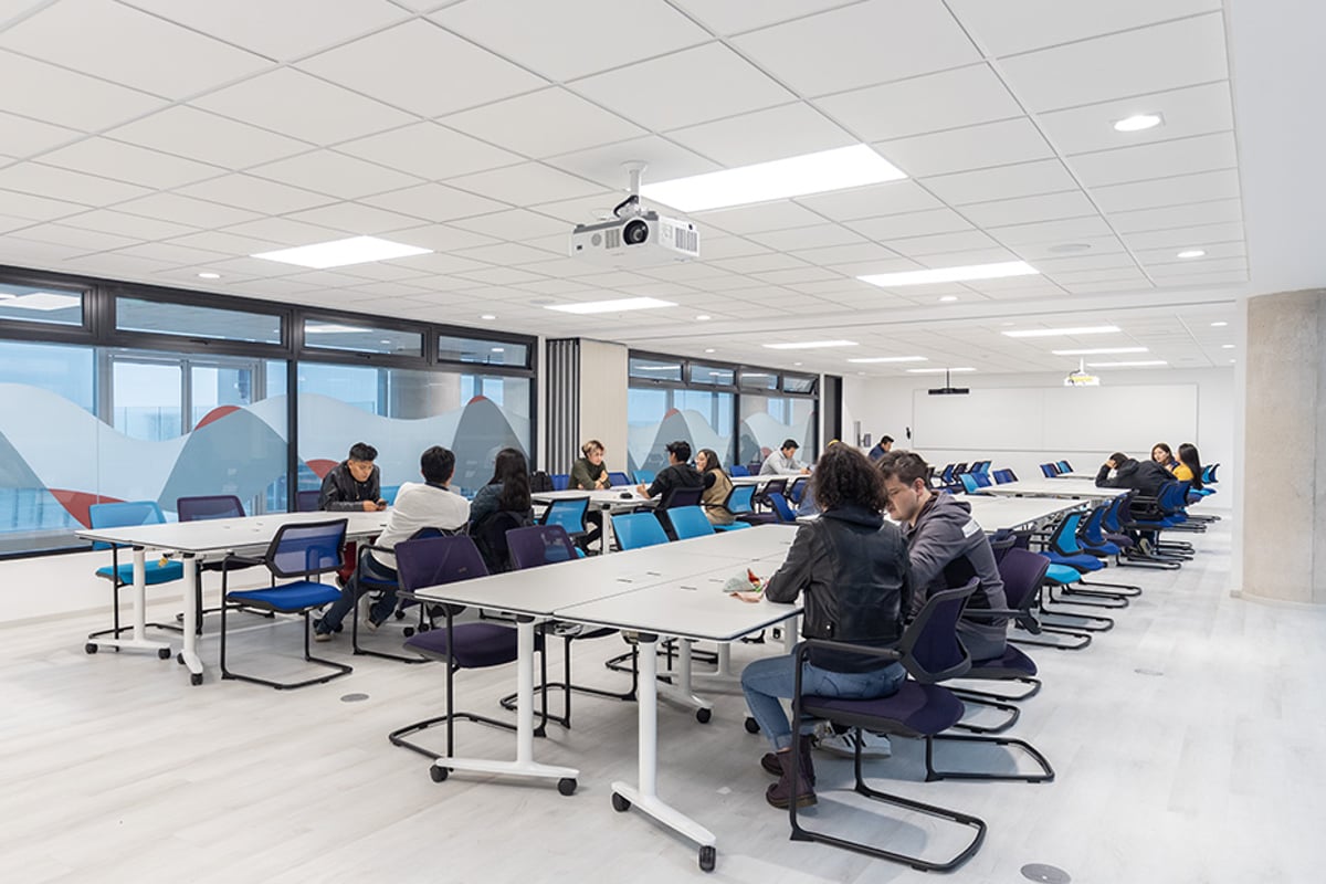 Classrooms are now designed to be restructured for different dynamics: lectures, individual projects, team projects, innovation, debate and presentation, among others thanks to versatile furniture that allows for greater interaction; a concept that differs greatly from the traditional design where desks faced the blackboard and the back of the classmates' necks.