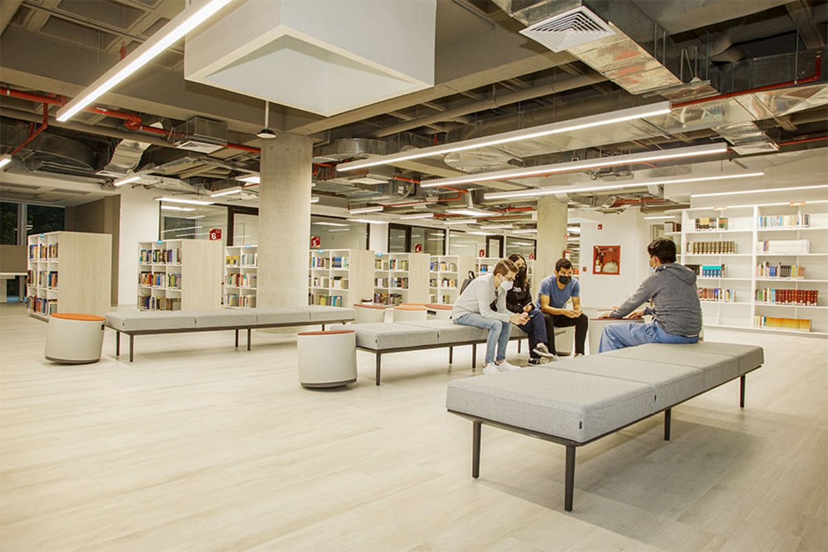 The incorporation of the new spaces allows for activities such as reading, studying, resting, researching, socialising, exercising, working collaboratively and even playing. Key activities and processes in the new learning methodologies, as well as for students' professional and personal development.