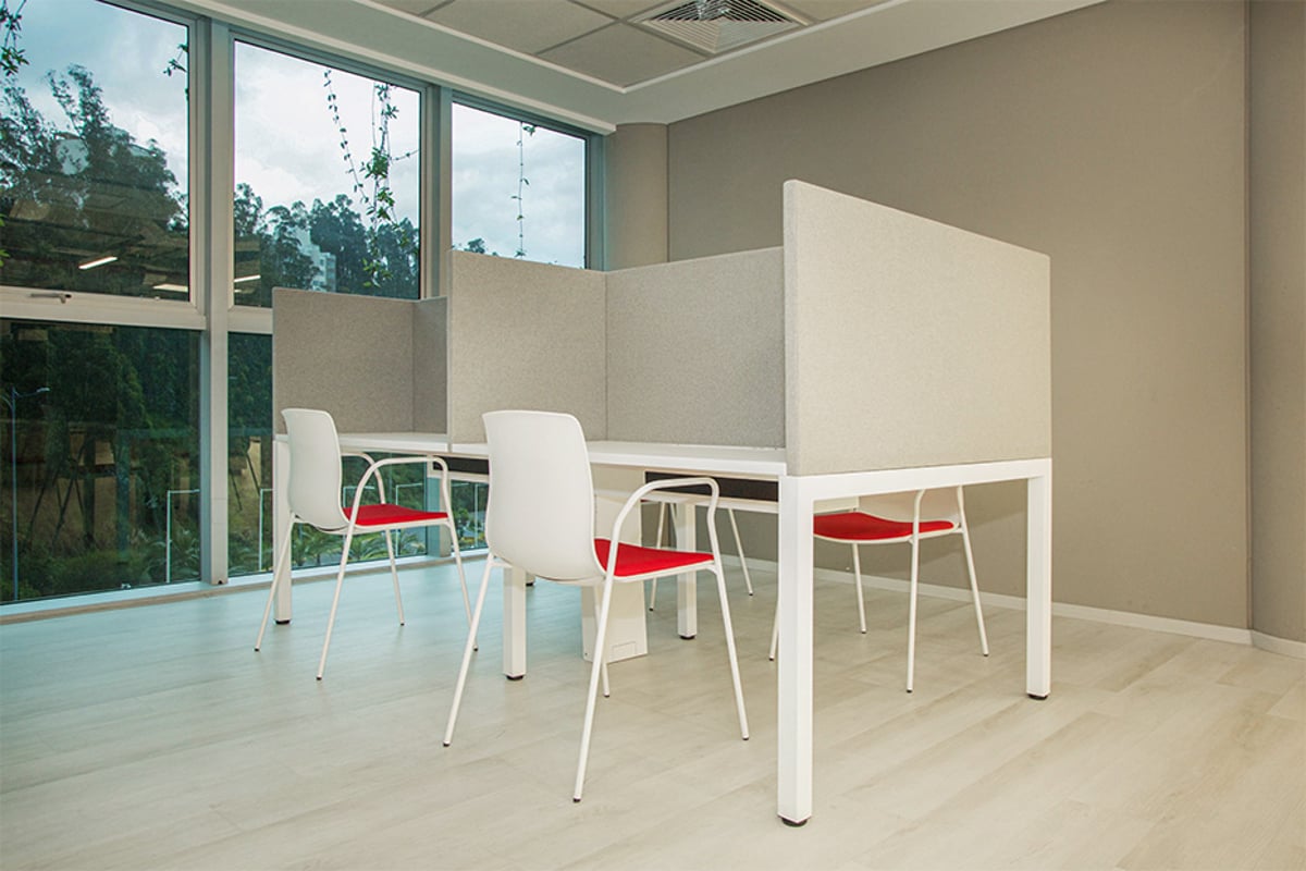 Depending on the needs of each space, furniture was sought that would fit in with the aesthetics of the new building, but above all with the functionality of the space. To this end, light, multi-purpose tables and chairs were used, such as the Talent table model, which allows each room to be adapted to any activity, depending on whether more or less capacity and work surface is required.