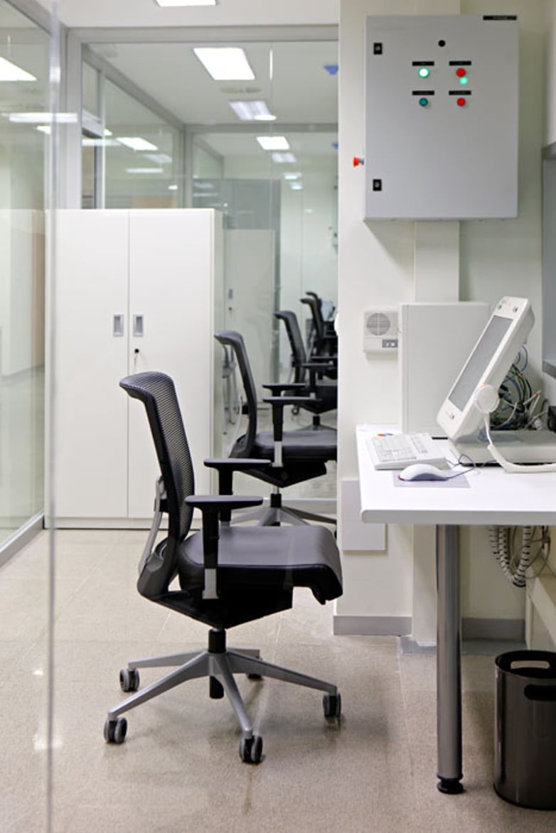 For communal areas that use workers from the hospital and meeting rooms, the program of desks Vital Plus have been selected again, because they offer the possibility to carry out multiple compositions. The Uma chair, with its discreet and elegant style, offers a various range of models suitable for different equipment needs.