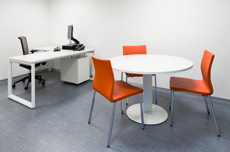And secondly, a fresh and informal image which is achieved by incorporating white Vital Plus ST and Circular Base desks, as well as Modular Cabinets and Buck chest of drawers. The UMA is fundamental to this combination in cheerful orange.
