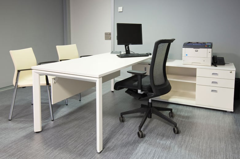 We have placed two office models, differentiating the type of activity to be developed in each one. Thanks to the flexibility of the Vital Plus ST program, we find on one hand, a desk with a closed chrome structure and wenge table top, with a visitor chair and for small meetings the UMA in black and the executive Winner chair also upholstered in black.