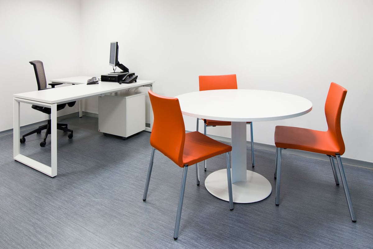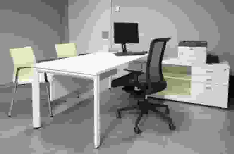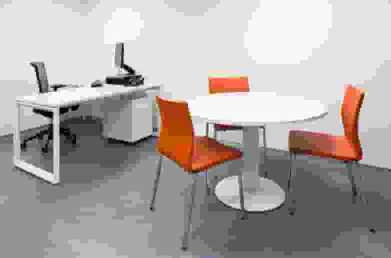 And secondly, a fresh and informal image which is achieved by incorporating white Vital Plus ST and Circular Base desks, as well as Modular Cabinets and Buck chest of drawers. The UMA is fundamental to this combination in cheerful orange.