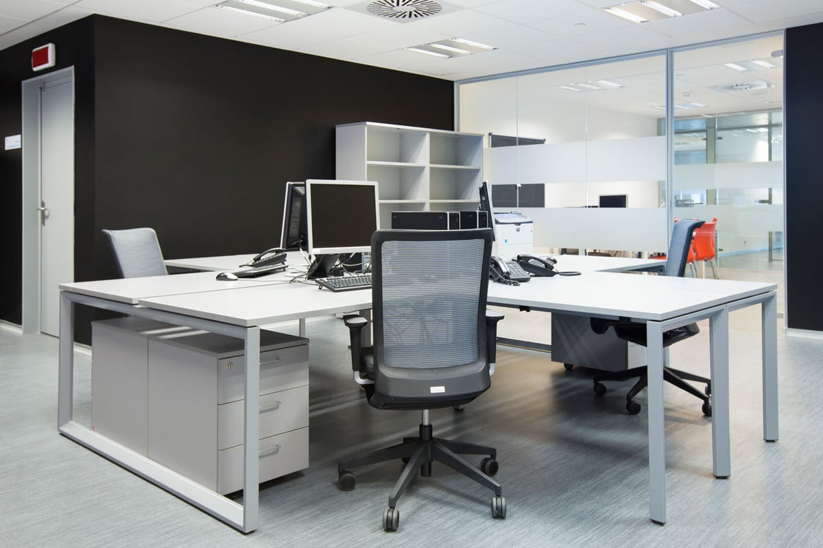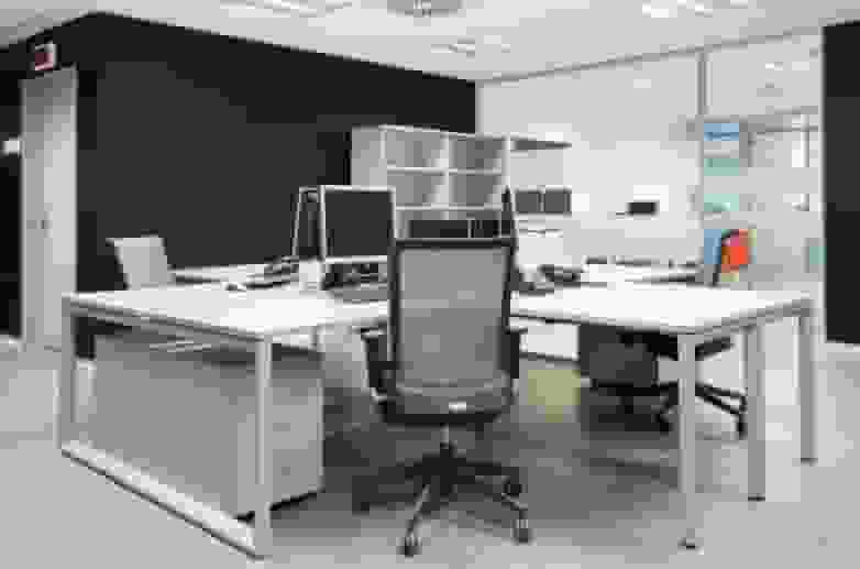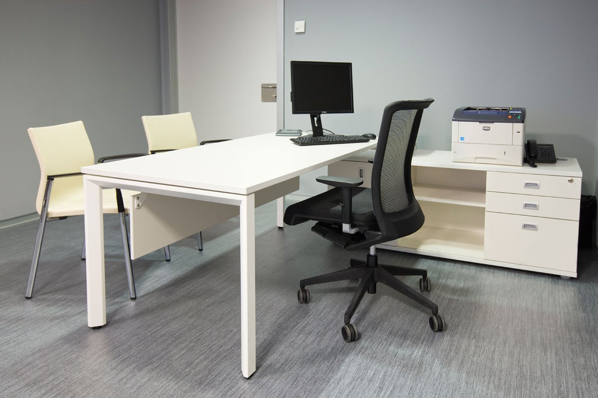 We have placed two office models, differentiating the type of activity to be developed in each one. Thanks to the flexibility of the Vital Plus ST program, we find on one hand, a desk with a closed chrome structure and wenge table top, with a visitor chair and for small meetings the UMA in black and the executive Winner chair also upholstered in black.