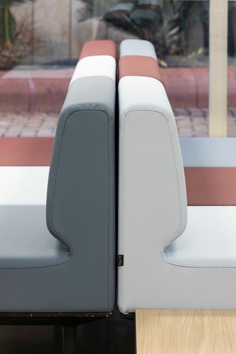 The Longo Nomada range of armchairs has been chosen to furnish the spacious and bright waiting areas. Its contemporary design and clean lines enhance the feeling of calm and wellbeing, and its modular nature allows the creation of infinite configurations to adapt to each space, through simple benches attached to the wall or freestanding islands, with or without arms and with side tables that add comfort.