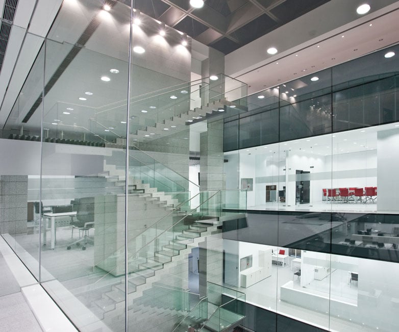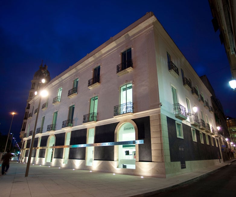 The new Headquarters of the Chamber of Commerce in Alicante has three floors and a basement partially spread out over 8000 metres, crowned by an enormous skylight which provides natural light into the facilities.