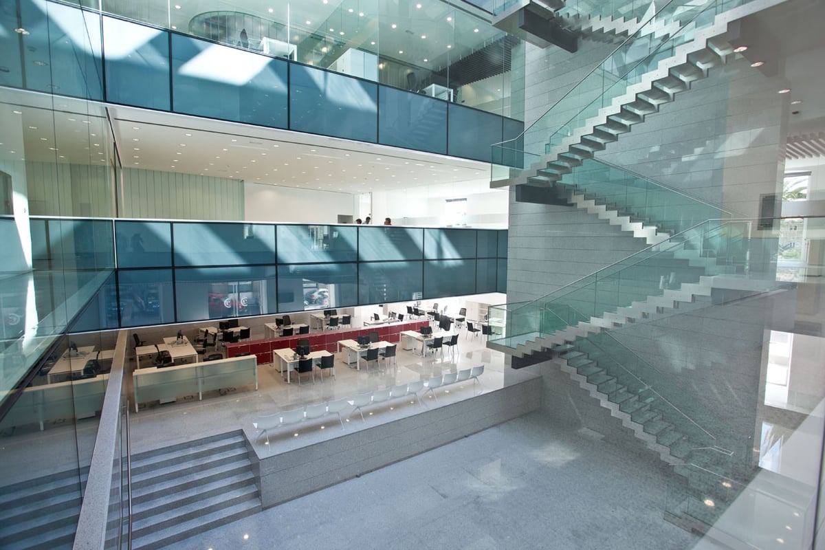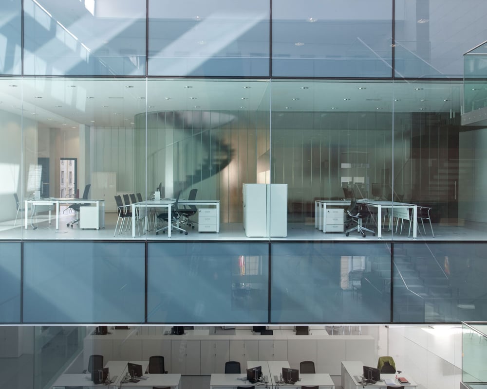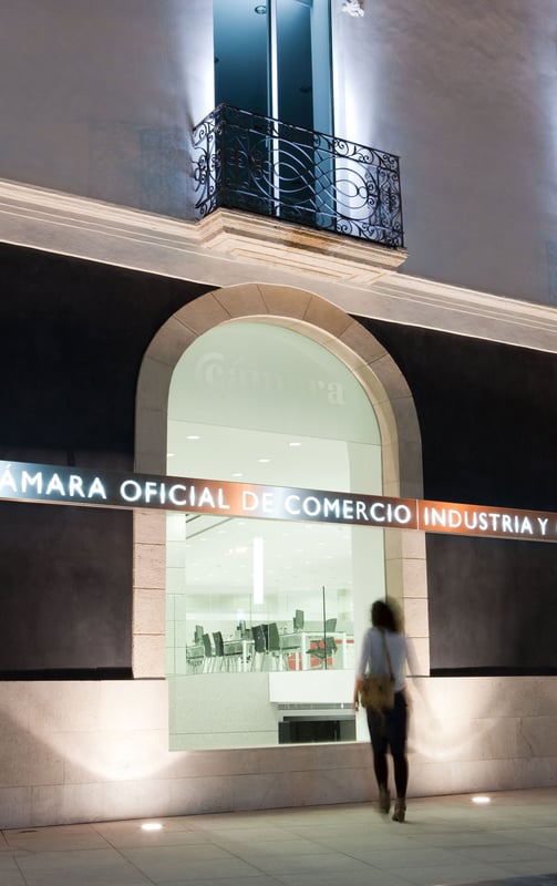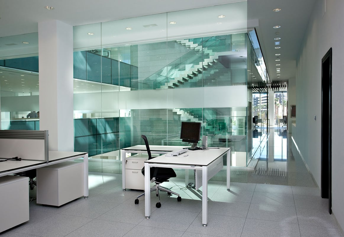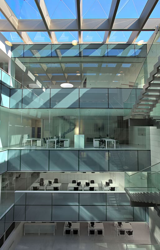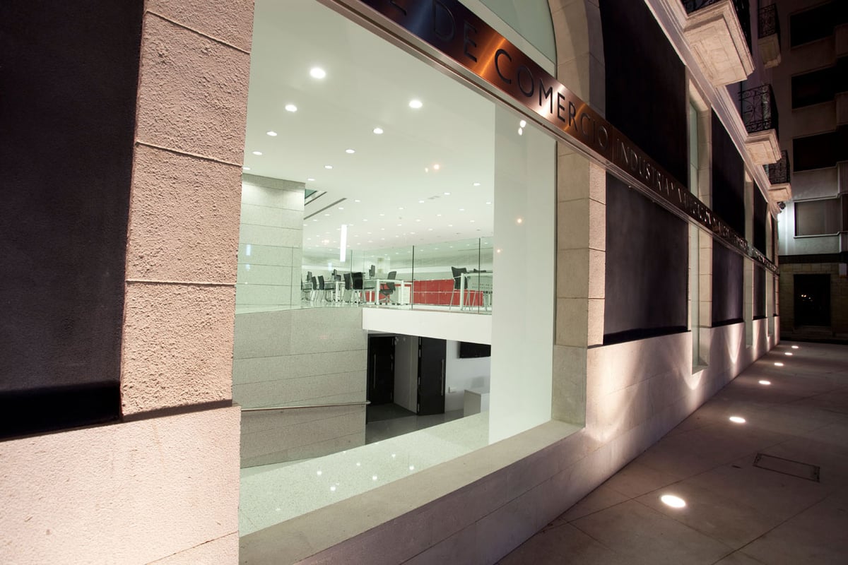 The new Headquarters of the Chamber of Commerce in Alicante has three floors and a basement partially spread out over 8000 metres, crowned by an enormous skylight which provides natural light into the facilities.
