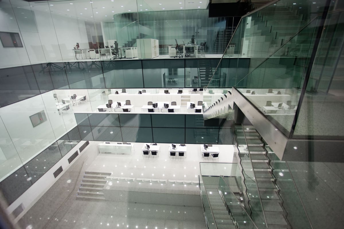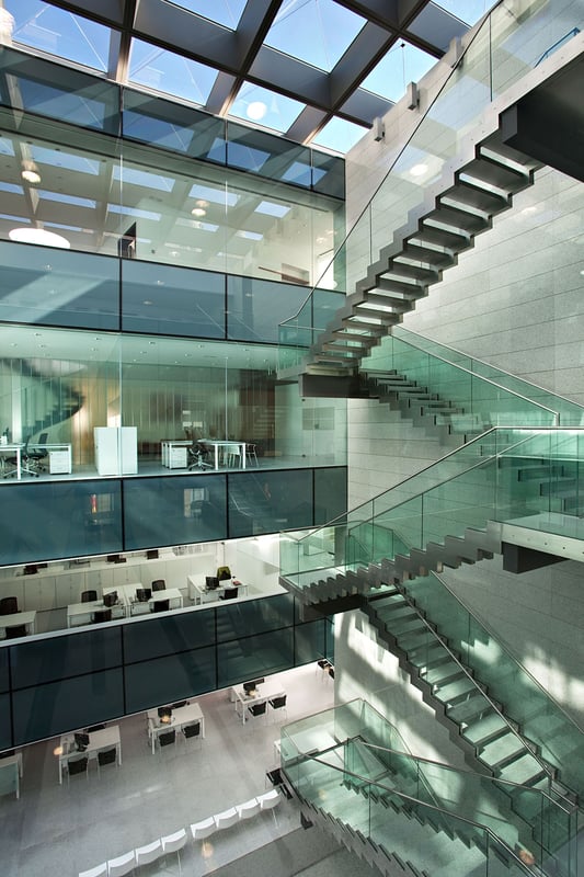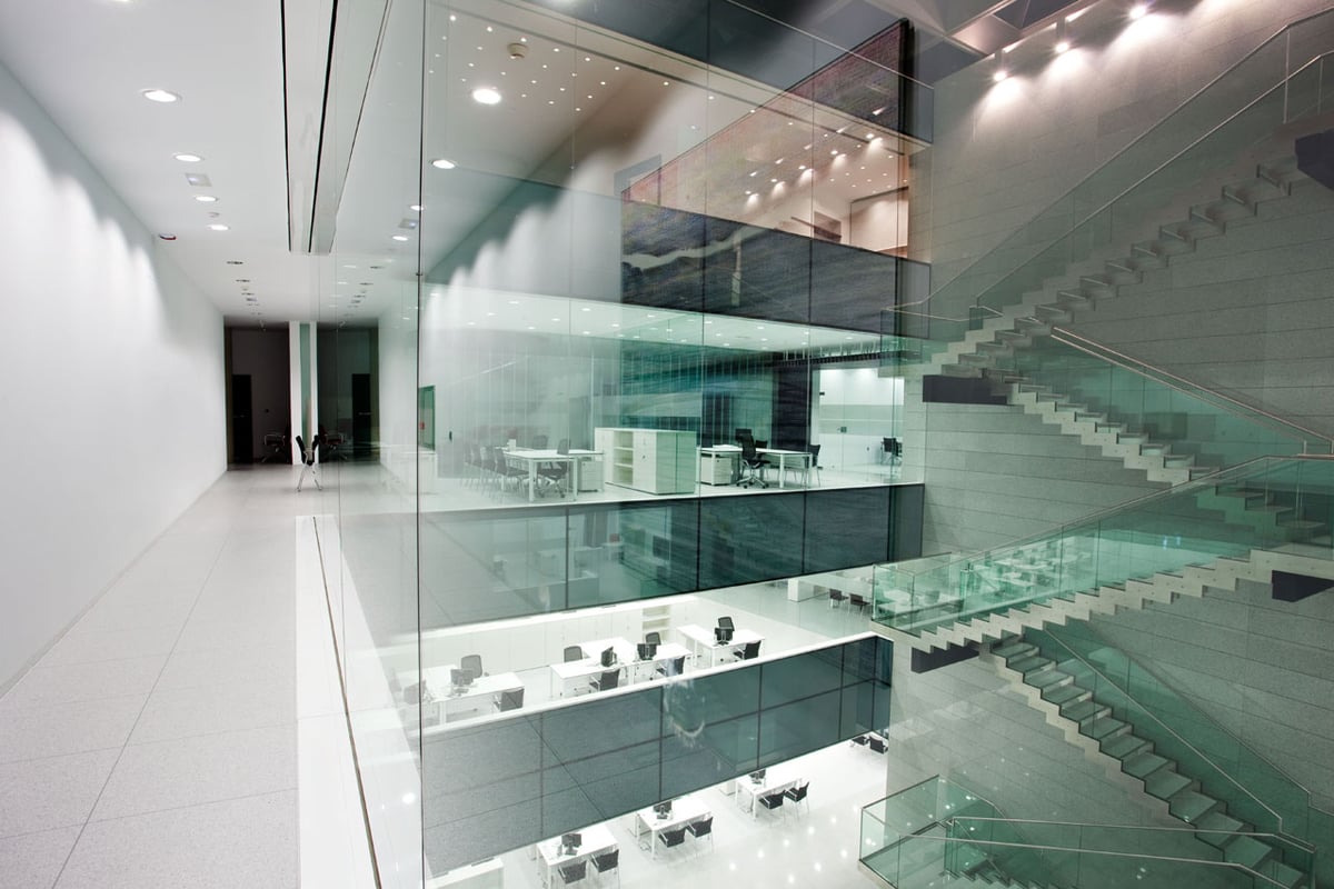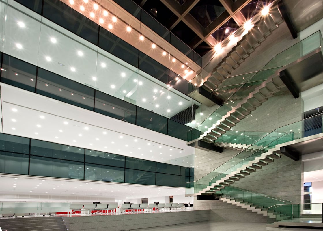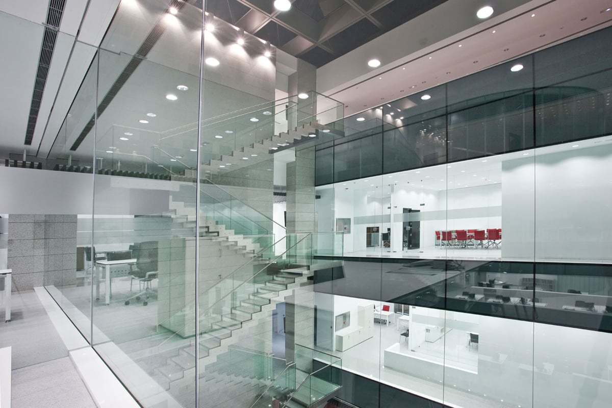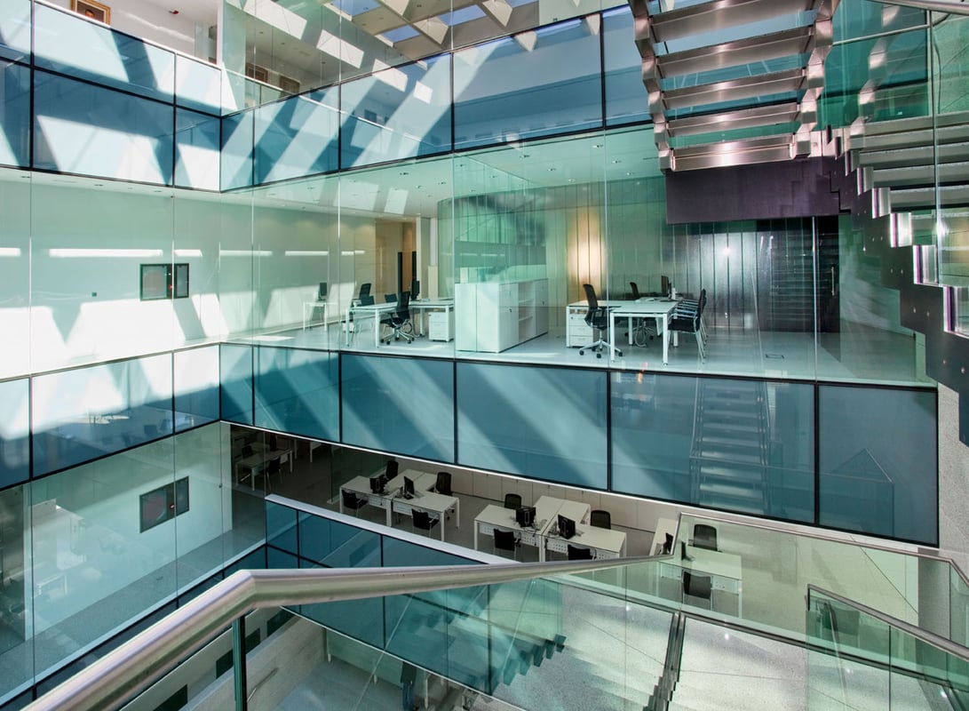 The new Headquarters of the Chamber of Commerce in Alicante has three floors and a basement partially spread out over 8000 metres, crowned by an enormous skylight which provides natural light into the facilities.