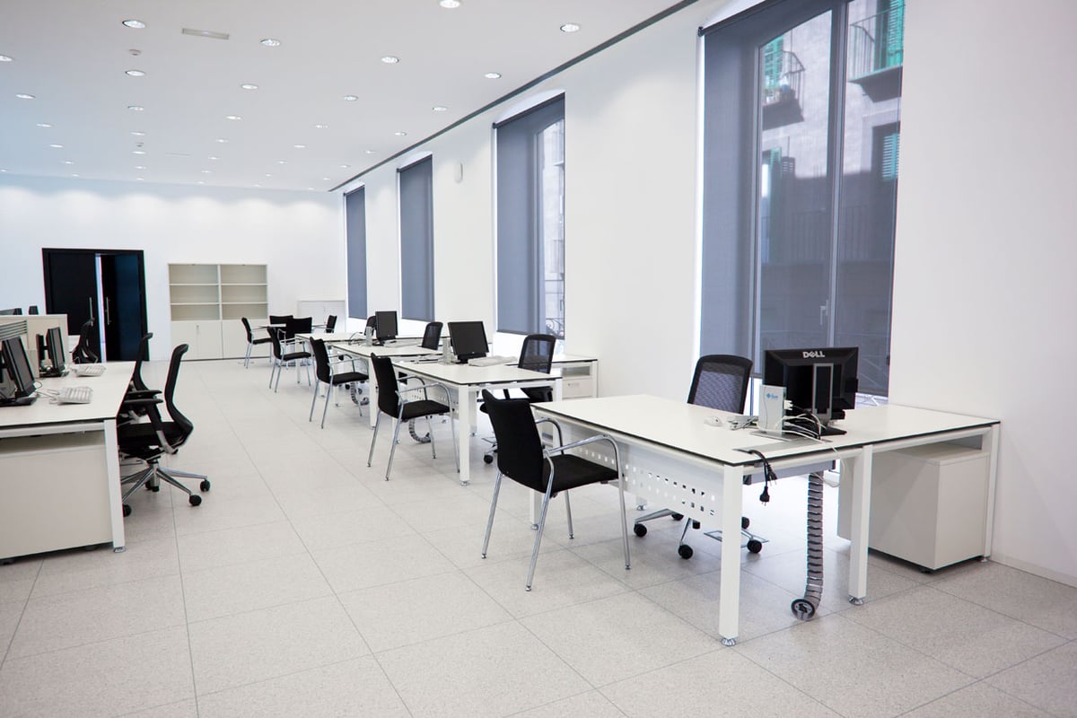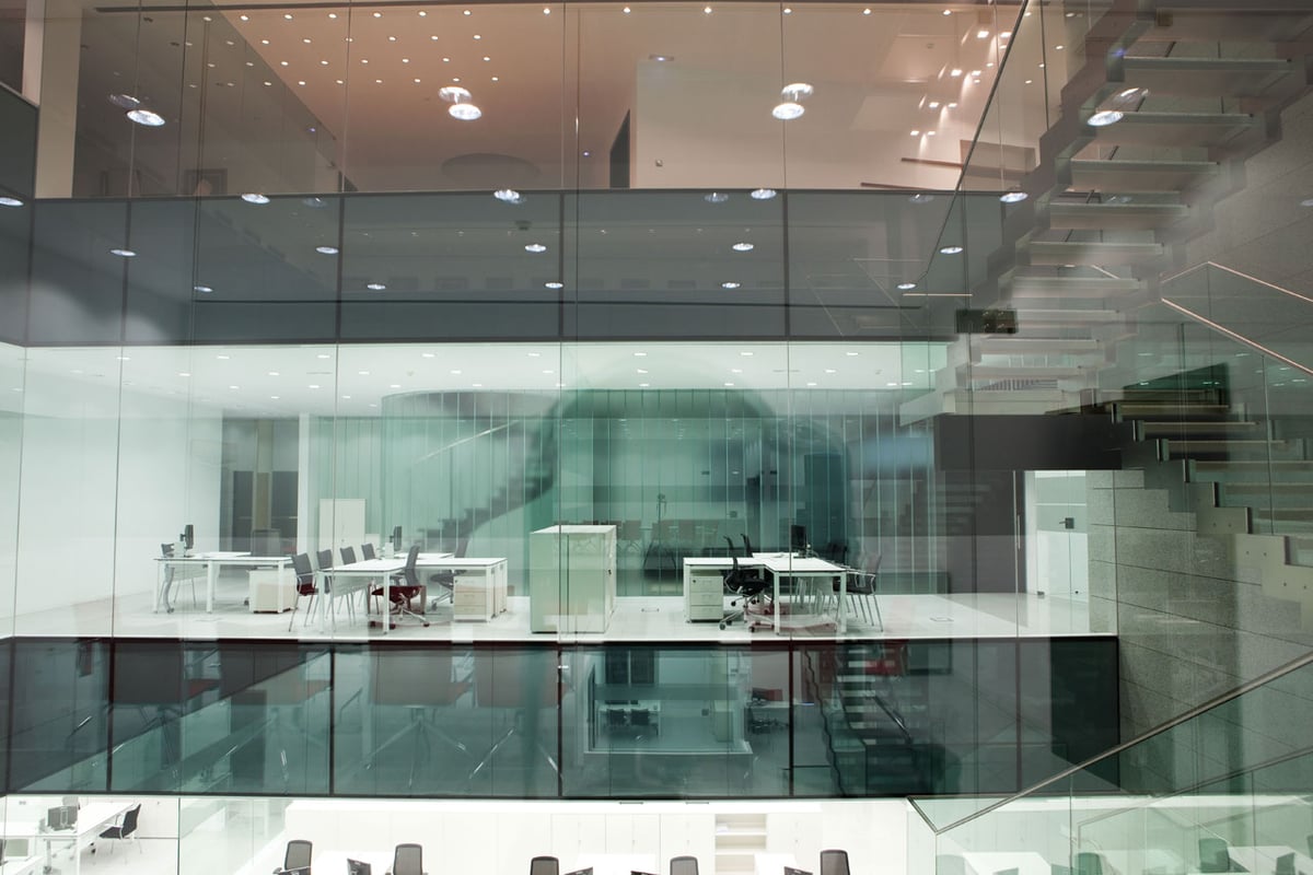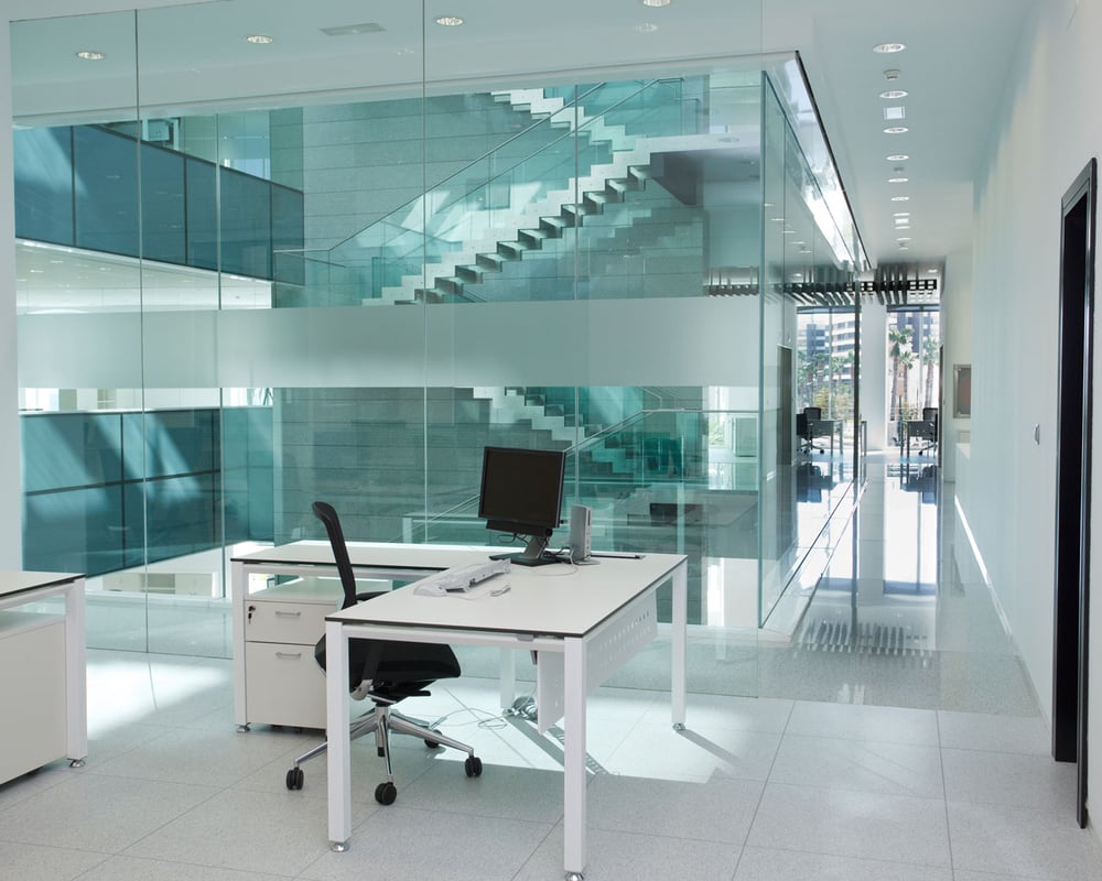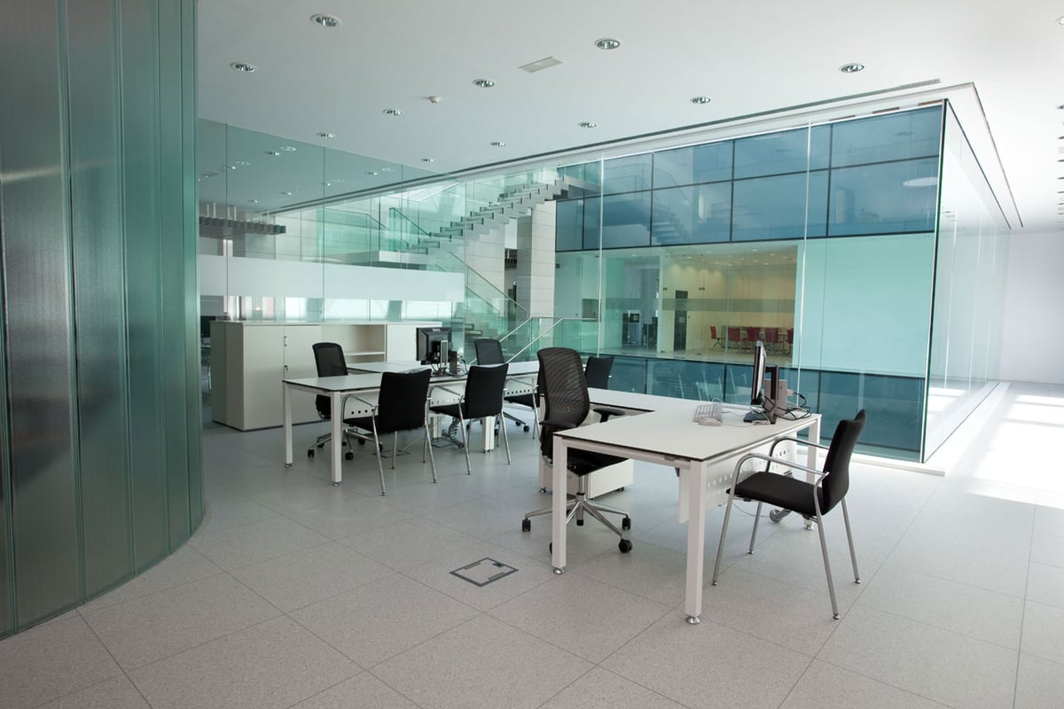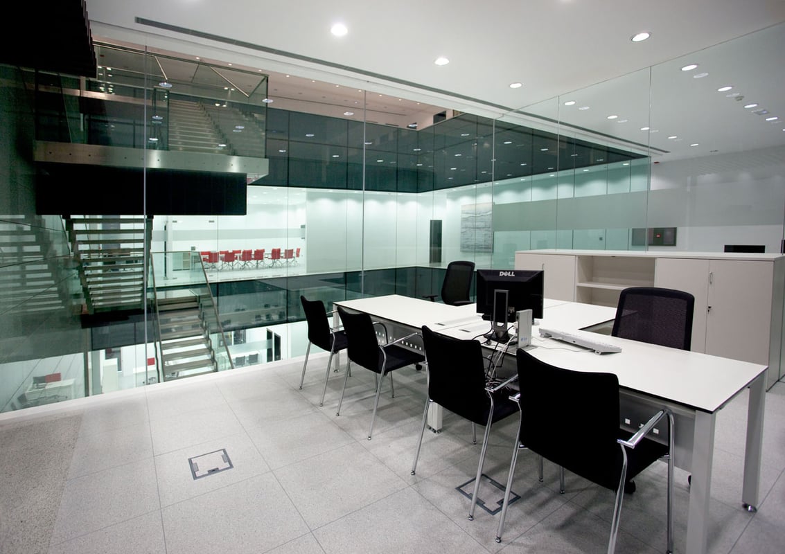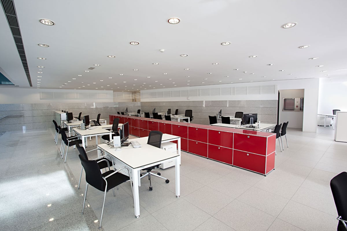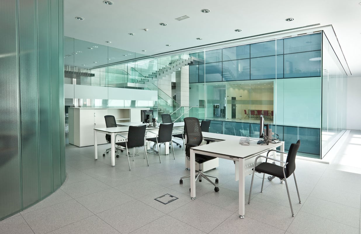 Glass, light and lightness are the main characteristics of the interior of the building. Therefore, after studying in detail the needs expressed for each of the areas, monochromatic equipment was proposed; white for all furniture and black for all seating, only breaking this trend for Ikara red chairs for the meeting rooms.