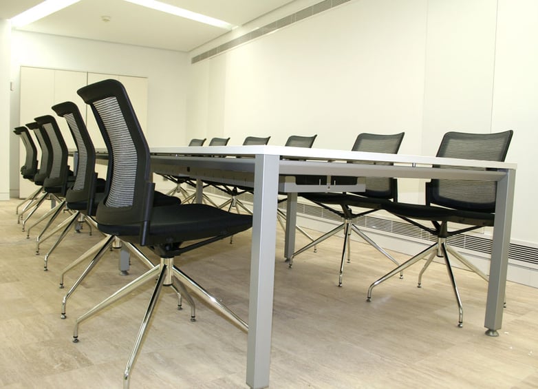The meeting rooms have been equipped with a large twin desk from the Vital program and with the Urban Plus chair, a versatile chair with natural and ergonomic lines. All the facilities have been combined in white for the furniture with black for the seating. The aluminium legs on the desks and chairs complete the selection of neutral colours.