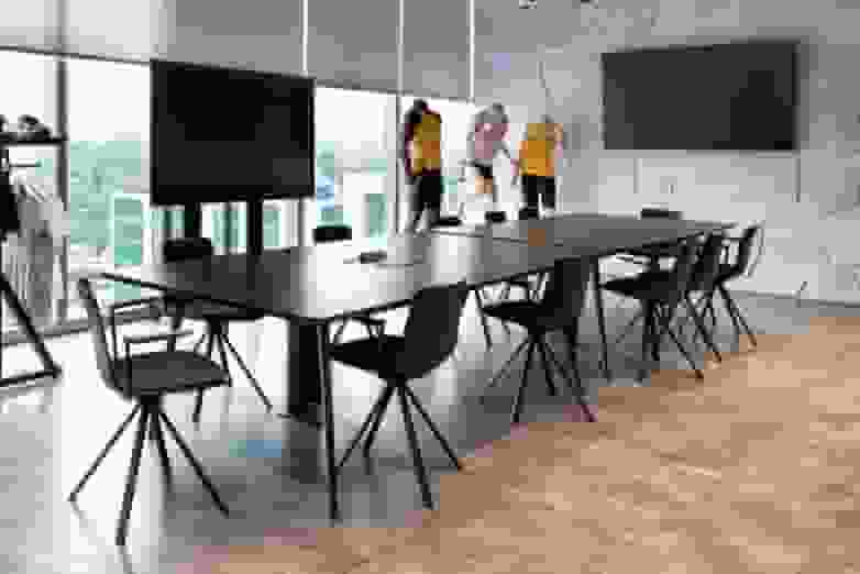 This dynamism is enhanced by the different heights of the Vital Pro tables and Efit chairs and stools that invite postural changes in the operational area. To maintain unity, these same chairs are used in the meeting rooms, while in the cafeteria, lighter furniture is used, with Plek folding tables and Tabula high tables.