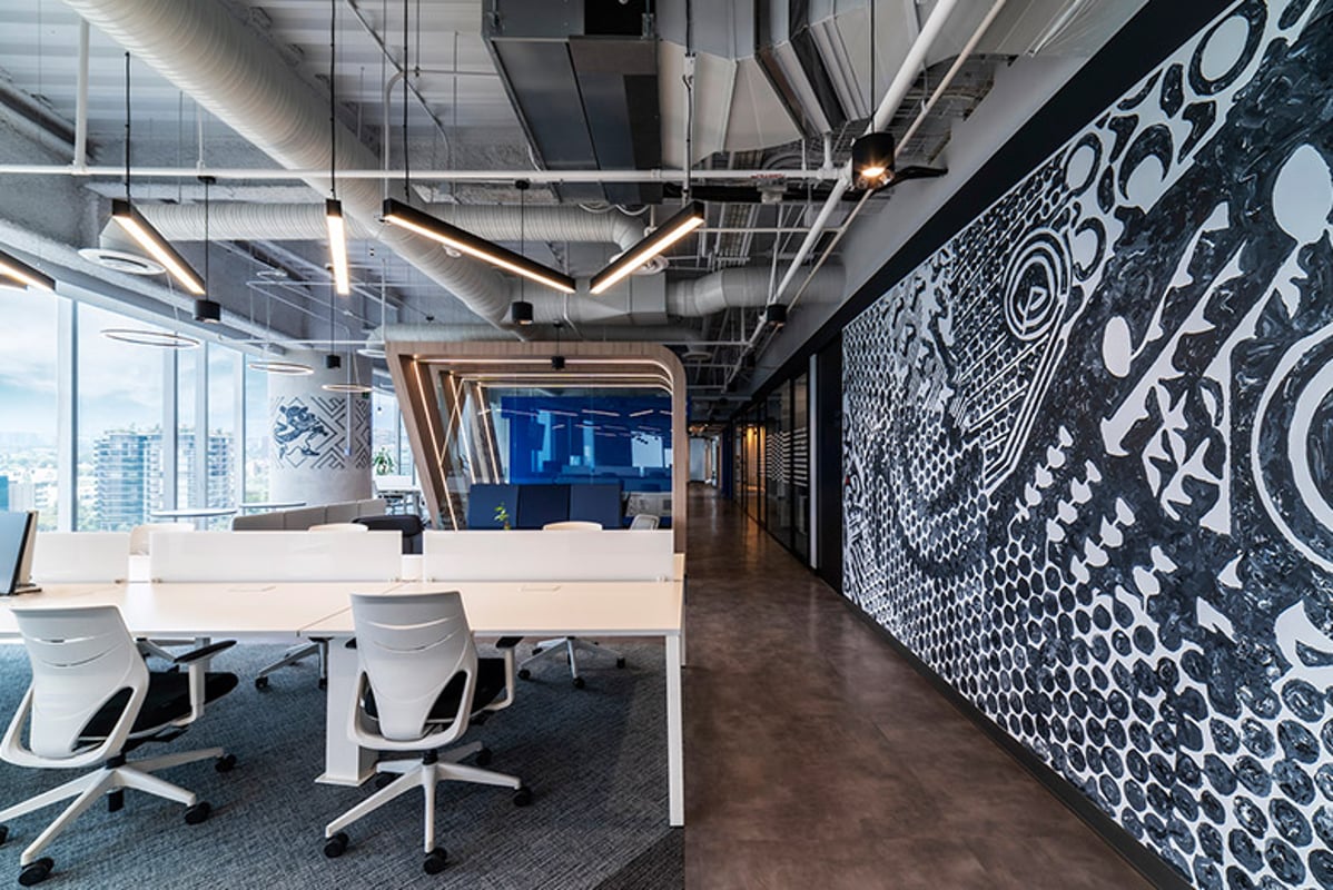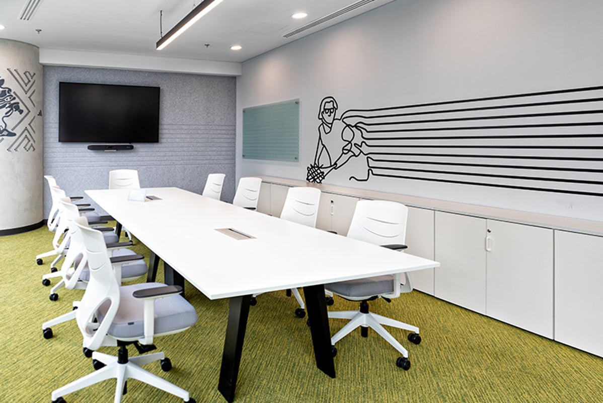 Art, through colourful interventions by artists such as Oscar Torres, which encourage creativity and innovation; and technology equipped with state-of-the-art connectivity and digital tools, play a key role in a design where communication goes far beyond the space itself and video conferencing facilities and smart meeting rooms enable seamless collaboration with any corner of the world.The art, through colourful interventions by artists such as Oscar Torres, which encourage creativity and innovation; and technology equipped with the most advanced connectivity and digital tools, play a fundamental role in a design where communication goes far beyond the space itself and videoconferencing facilities and intelligent meeting rooms allow for seamless collaboration with any corner of the world.