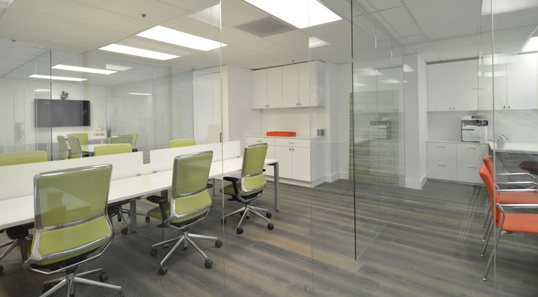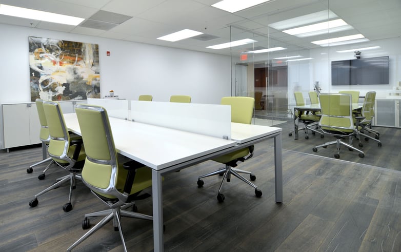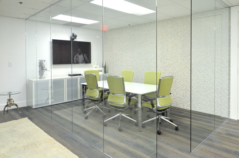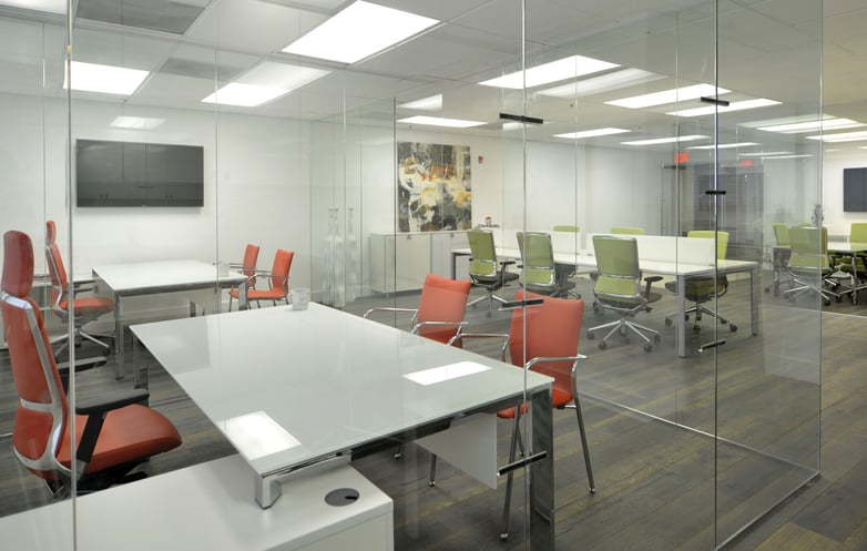Although the installation was designed under the concept of an open office, spacious and with all the workstations sharing the same space, transparent glass has been used to separate certain areas, such as offices or meeting rooms. The aspect is of an open room, without visual barriers, but at the same time maintaining privacy of certain environments.