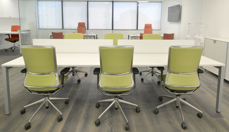 The same combination of furniture selected for the meeting rooms has been used for the operative positions. In this case, however, due to the numerous places needed to cover, the Vital Plus desk has been chosen in the twin desk option with a longitudinal screen.