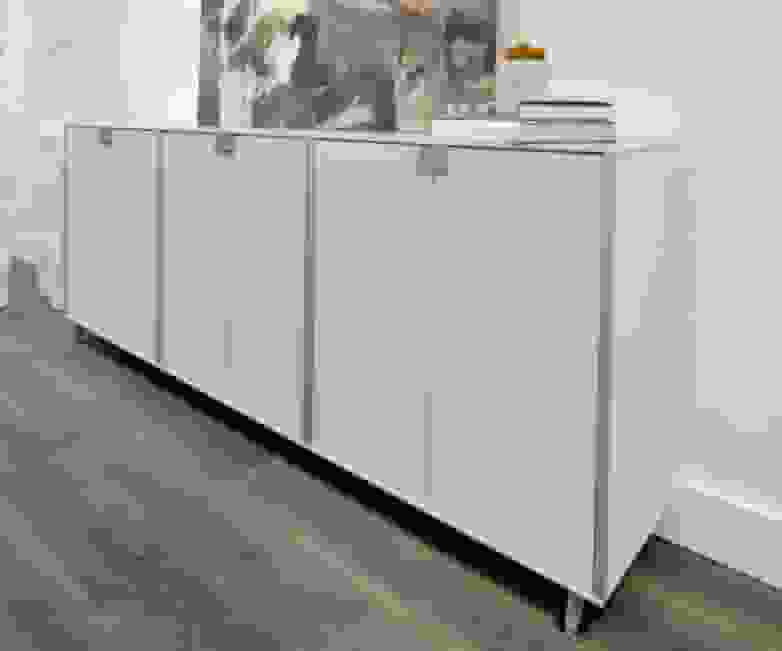 Another piece of furniture used to generate filing is the Block cabinet, in white and with a metal frame, to match the rest of the installation. The result is an office with elegant aesthetics achieved by a combination of furniture, materials and colours.
